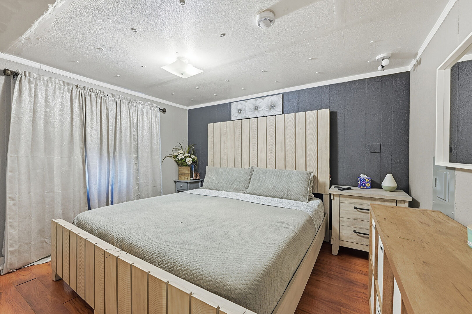 Crown Molding, Smoke Carbon Monoxide Detector, Textured Wall, Wood Finish Floor, Textured Ceiling