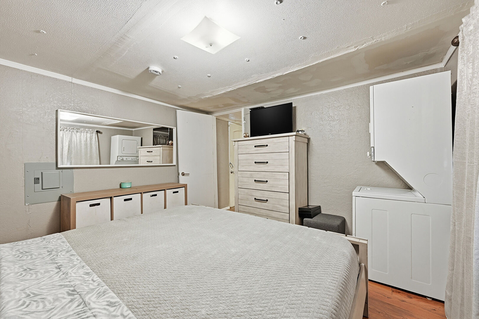 Closet, Crown Molding, Natural Light, Textured Ceiling, Wood Finish Floor, Baseboards Wall