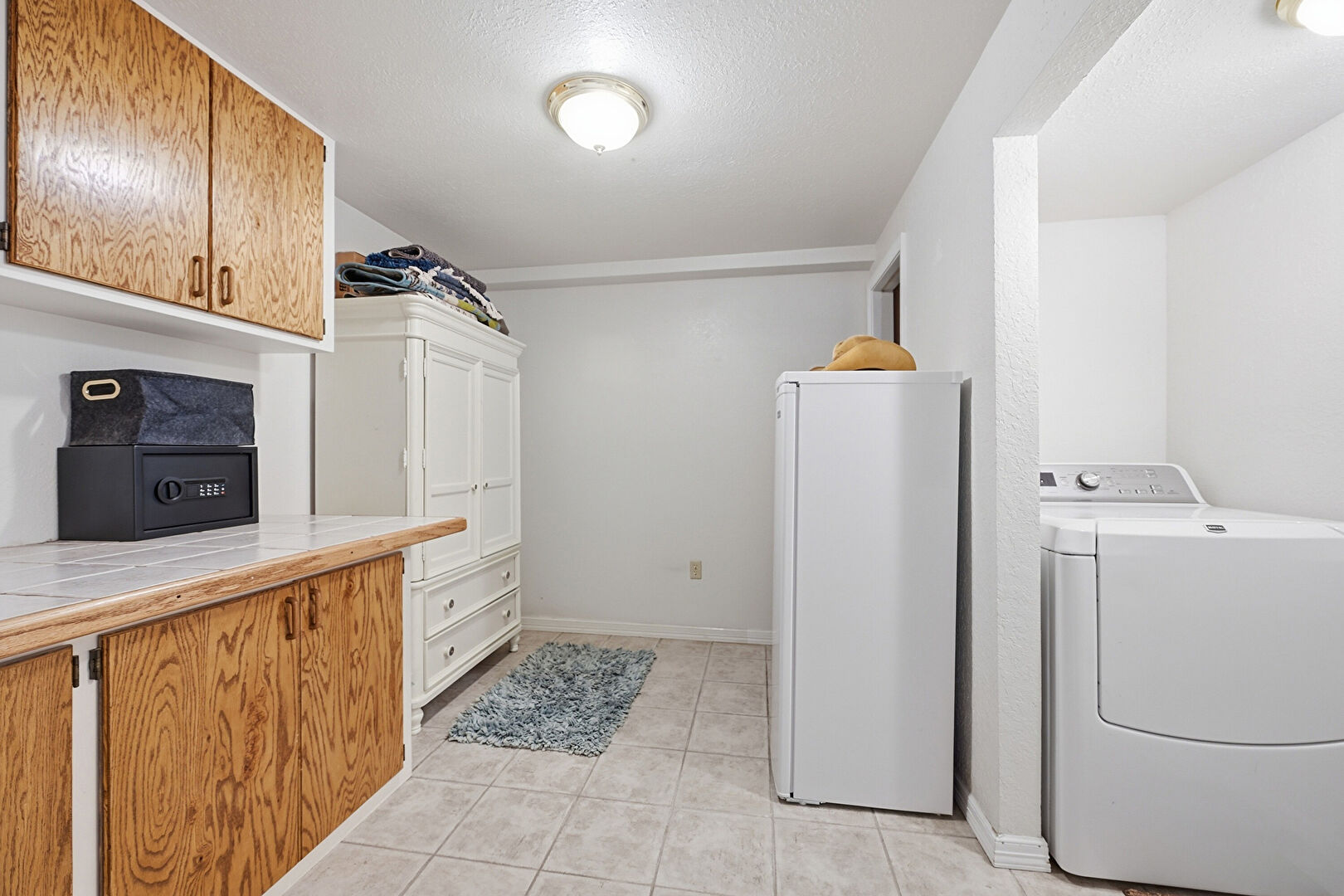 Baseboards Wall, Drywall, Laundry, Tile Floor, Textured Ceiling