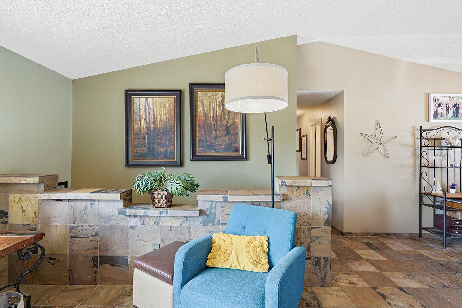 Drywall, Textured Ceiling, Vaulted Ceiling, Stone Finish Floor
