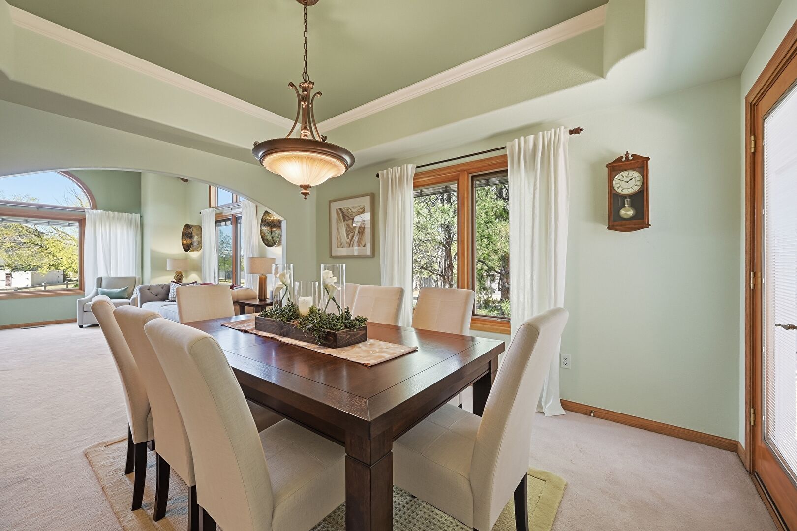 Baseboards Wall, Carpet, Crown Molding, Drywall, Natural Light, Tray Ceiling, Arched Walkways