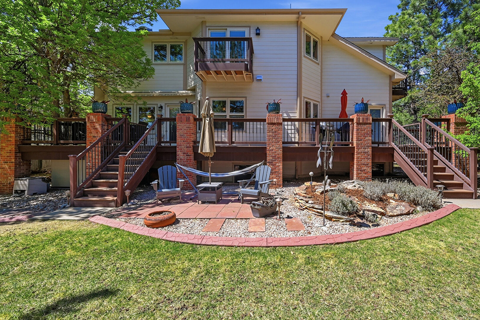 Balcony, Deck, Downspout, Fence, Fire Pit, Horizontal Siding, Lawn, Metal Roof, Patio, Stairs, Balcony, Lawn, Stairs