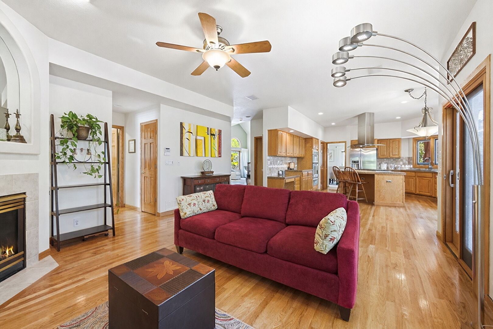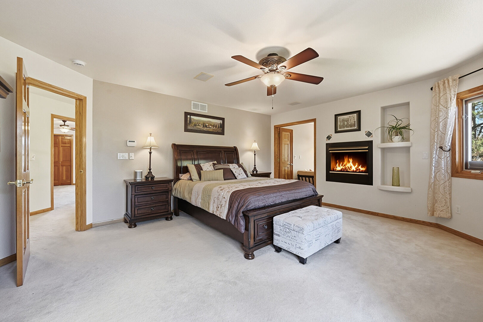 Baseboards Wall, Carpet, Ceiling Fan, Drywall, Fireplace, Natural Light, Vent, Smoke Carbon Monoxide Detector