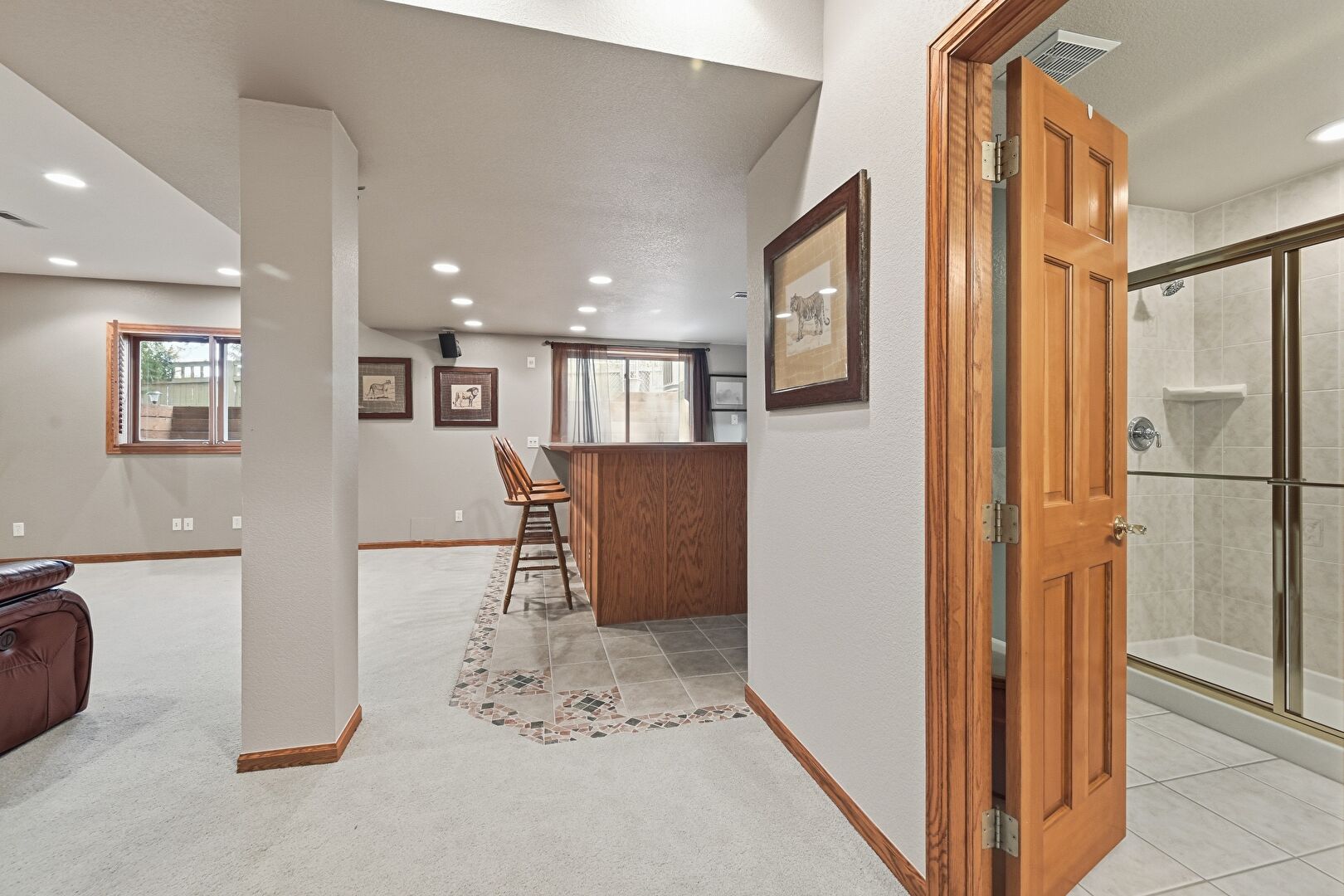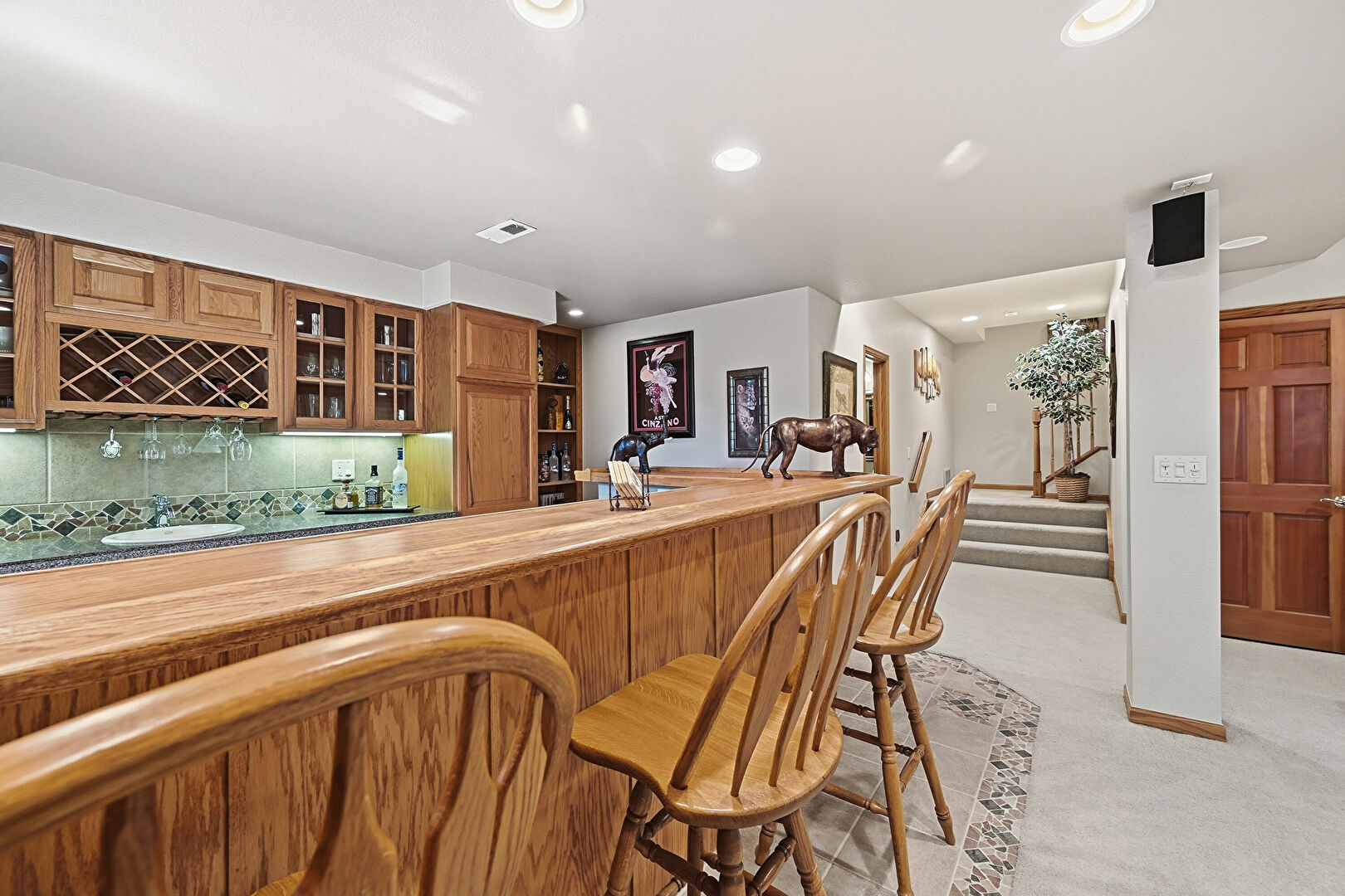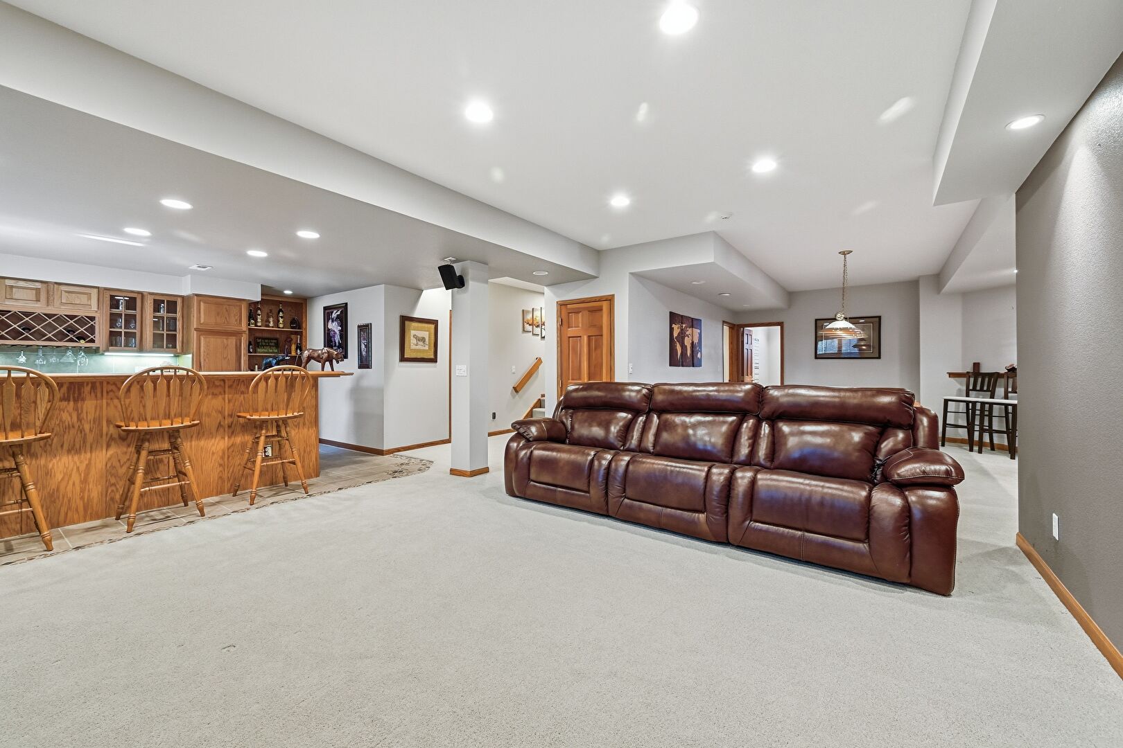 Basement, Carpet, Drywall, Indoor Bar, Recessed Lighting, Baseboards Wall