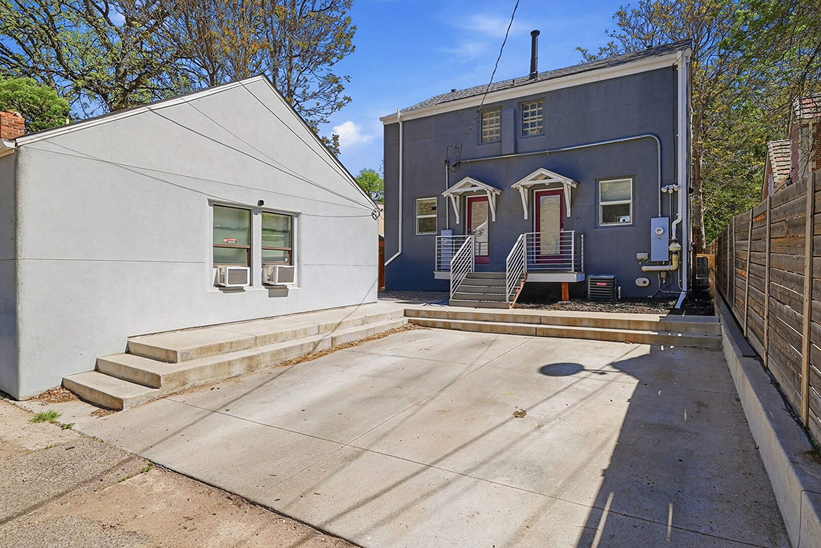 Central Ac, Downspout, Electric Meter, Fence, Gutters, Parking Pad, Porch, Stoop, Stucco Siding, Window Mounted Ac, Stoop, Stucco Siding, Window Mounted Ac