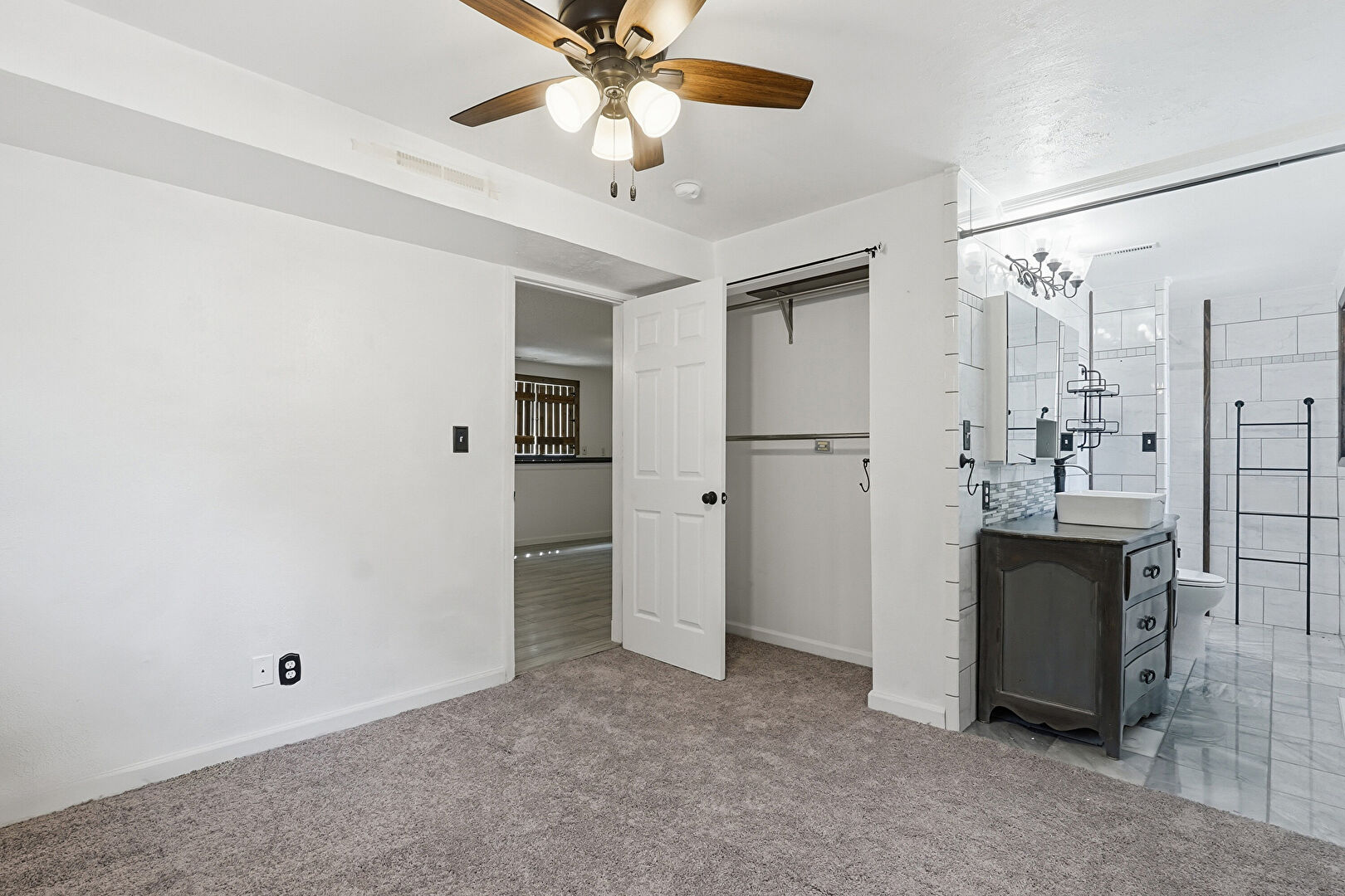 Baseboards Wall, Carpet, Closet, Drywall, Natural Light, Vent, Ceiling Fan