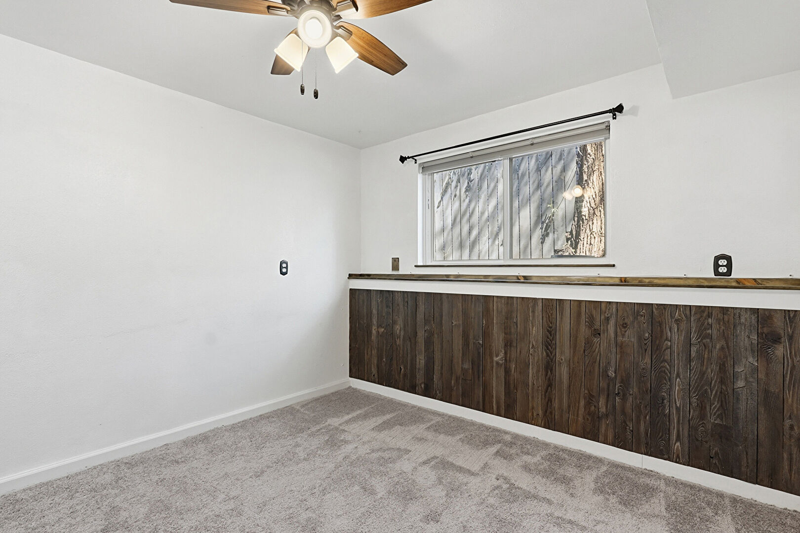 Barn Door, Baseboards Wall, Carpet, Ceiling Fan, Drywall, Natural Light, Paneling Wall, Smoke Carbon Monoxide Detector, Vent, Wainscot Wall, Crown Molding, Vent