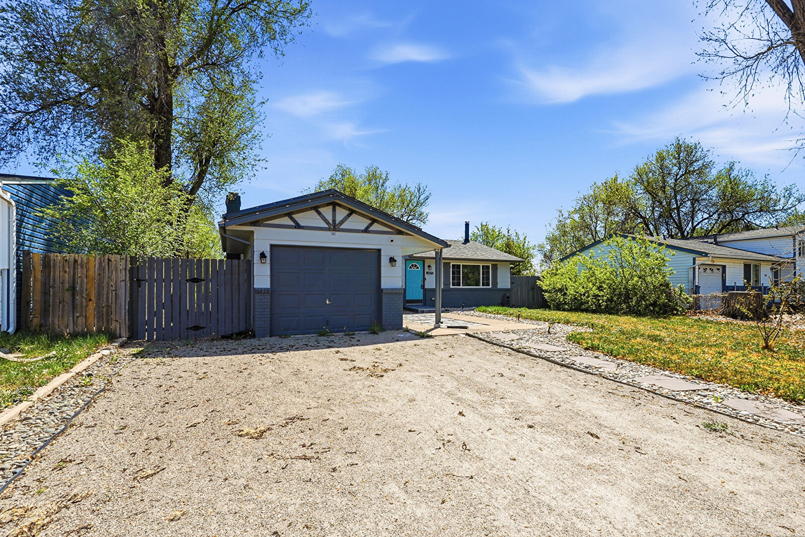 Brick Siding, Chimney, Downspout, Driveway, Fence, Gate, Horizontal Siding, Lawn, Shingle Roof, Brick Siding, Gutters
