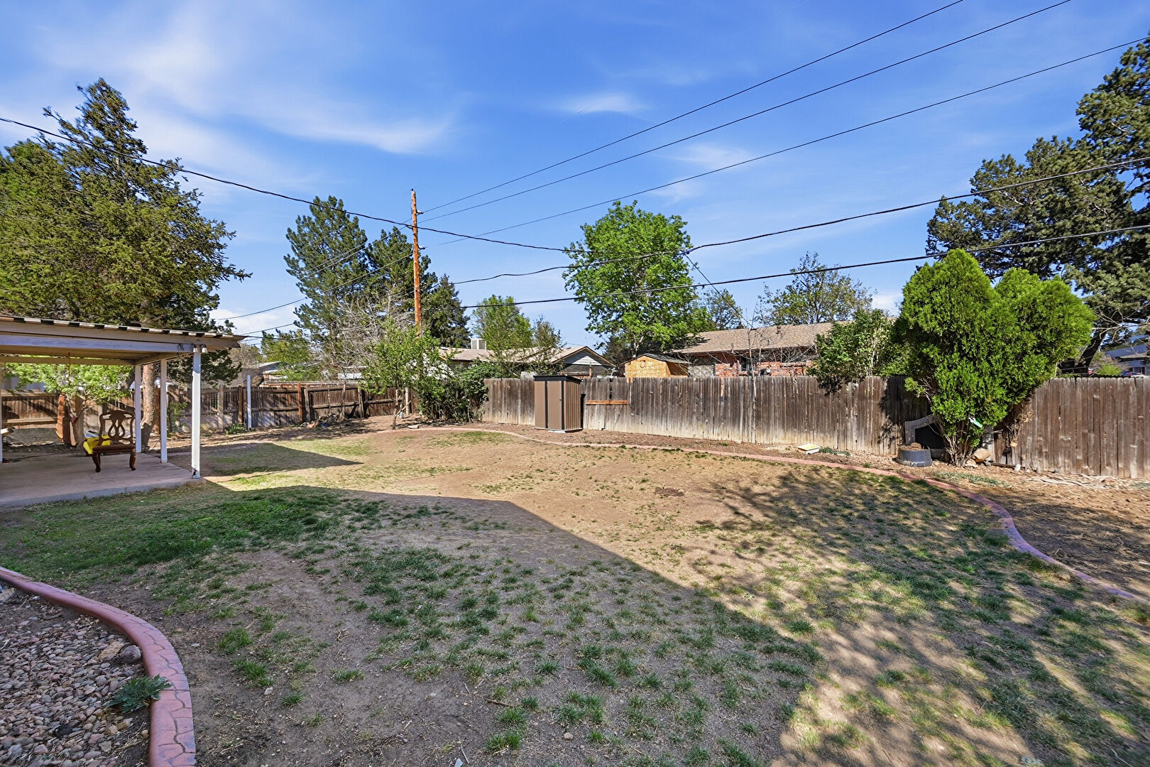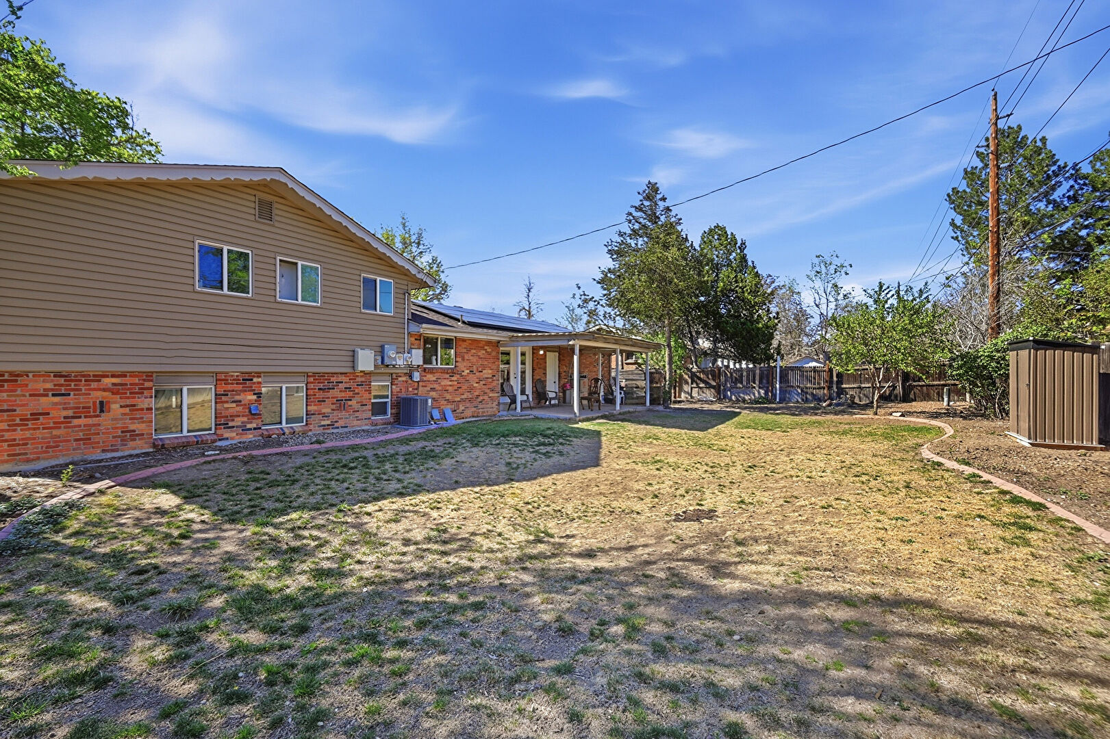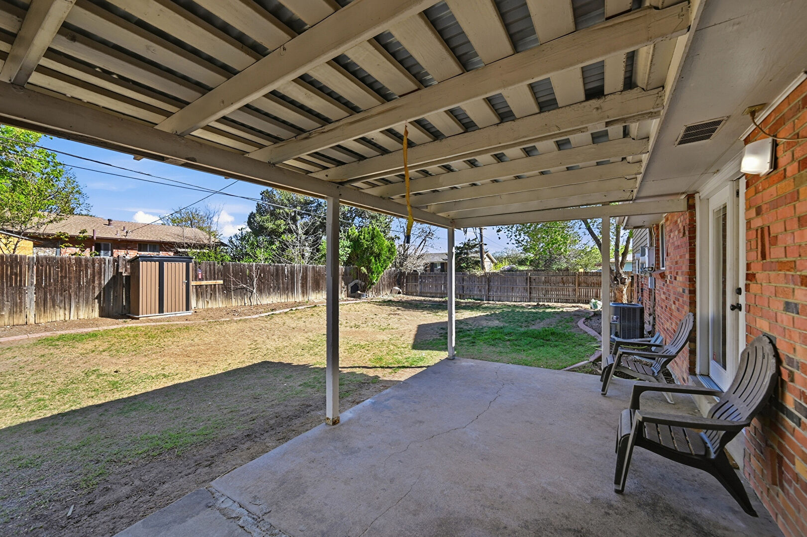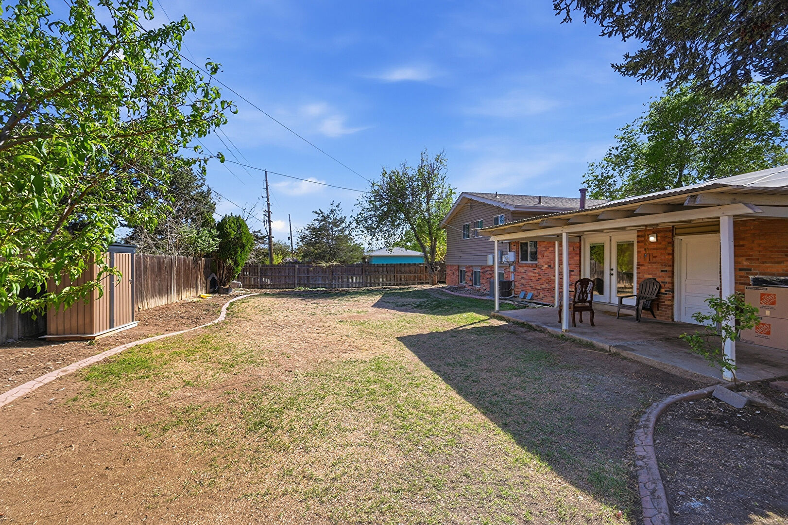 Central Ac, Fence, French Doors, Lawn, Outdoor Structure, Patio, Pergola, Shed, Fence, Patio, Shed