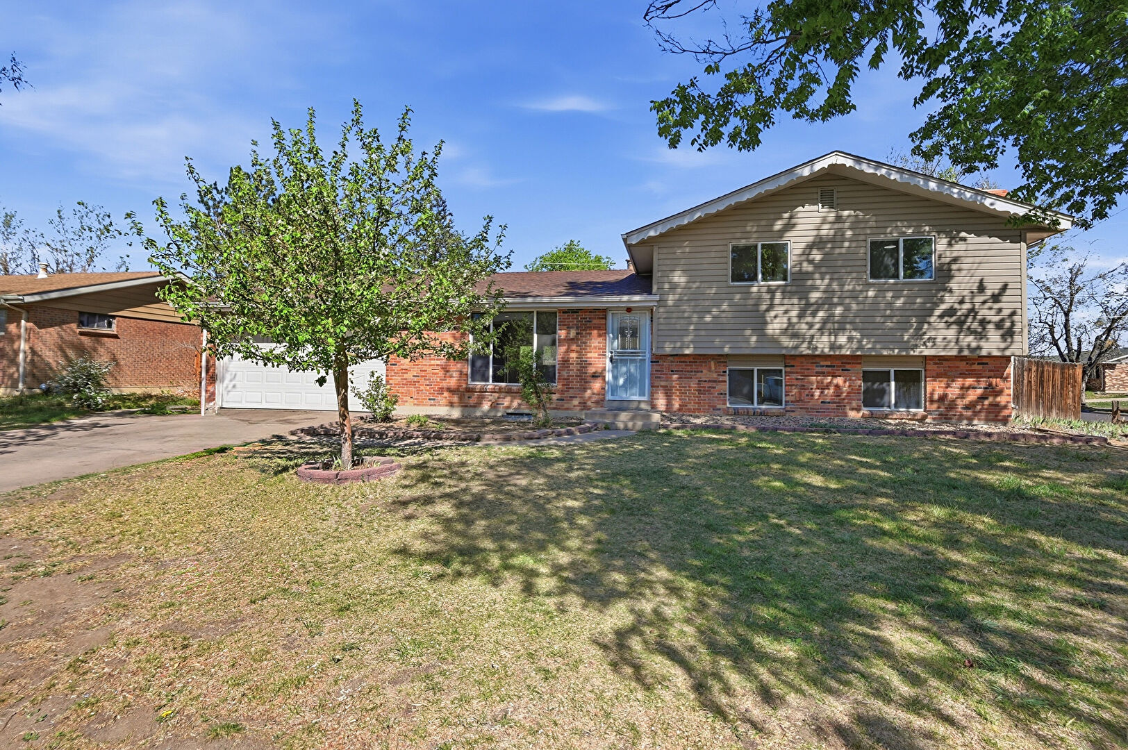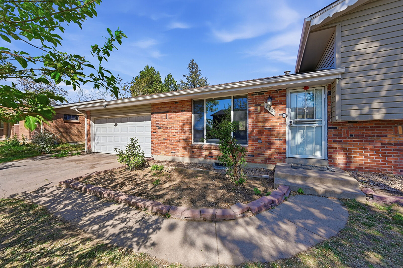 Brick Siding, Concrete Foundation, Downspout, Driveway, Fence, Gutters, Horizontal Siding, Lawn, Shingle Roof, Chimney, Concrete Foundation, Downspout, Horizontal Siding