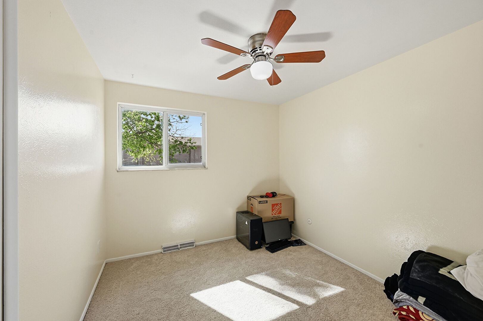 Baseboards Wall, Carpet, Drywall, Natural Light, Vent, Ceiling Fan