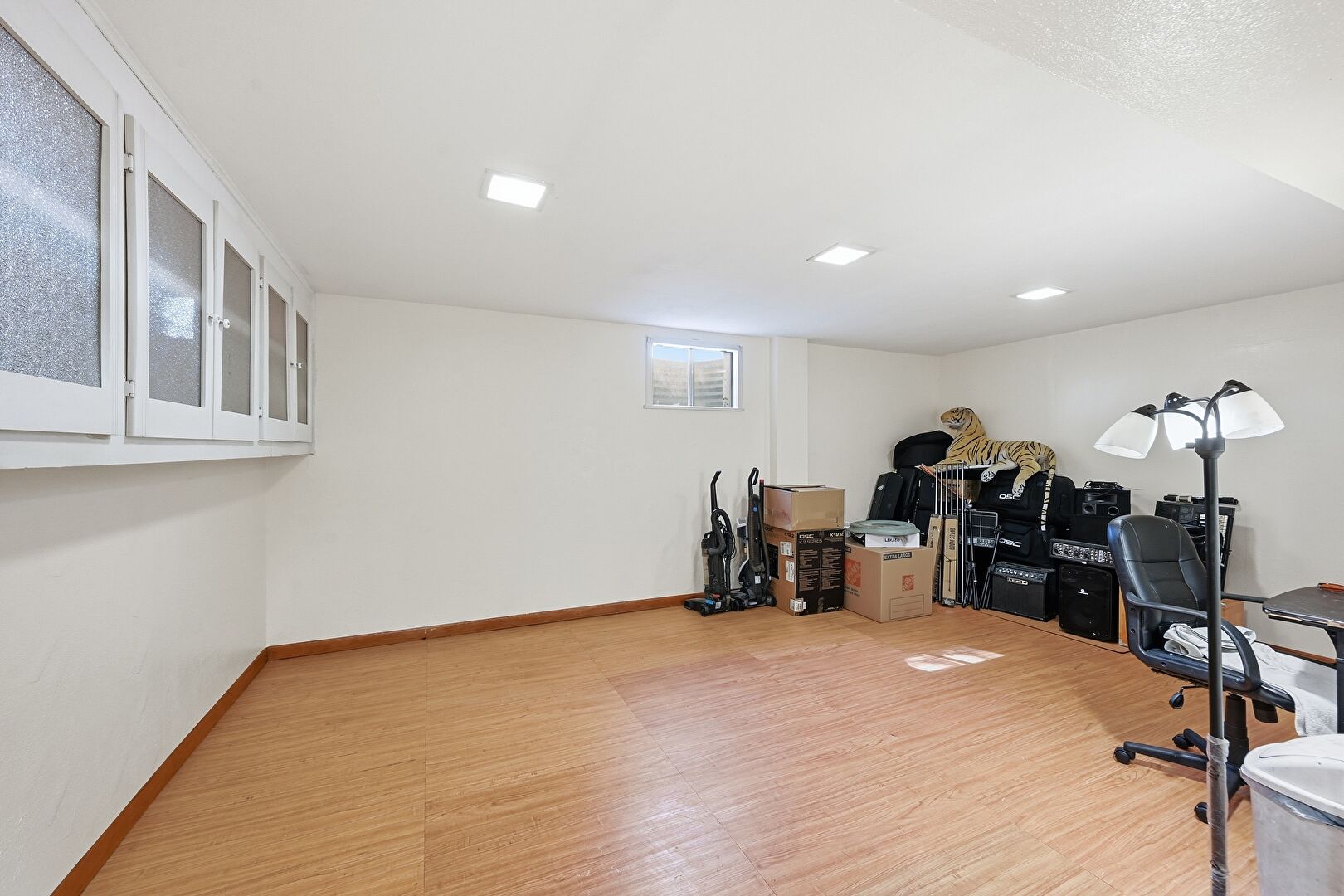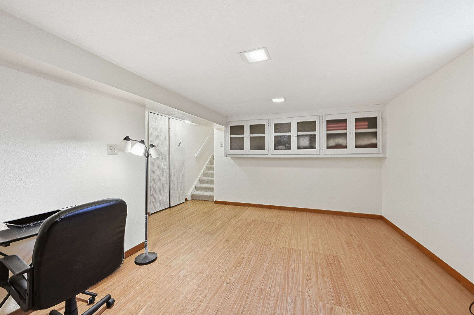 Baseboards Wall, Basement, Drywall, Office Area, Wood Finish Floor, Basement, Wood Finish Floor