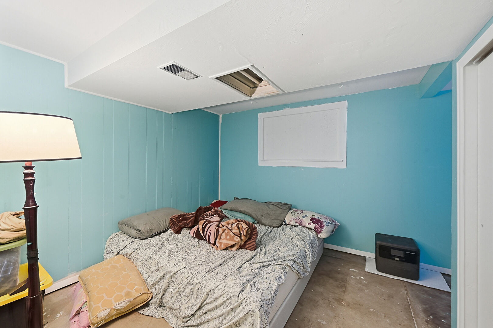 Baseboard Radiator, Basement, Concrete Floor, Drywall, Vent, Baseboards Wall