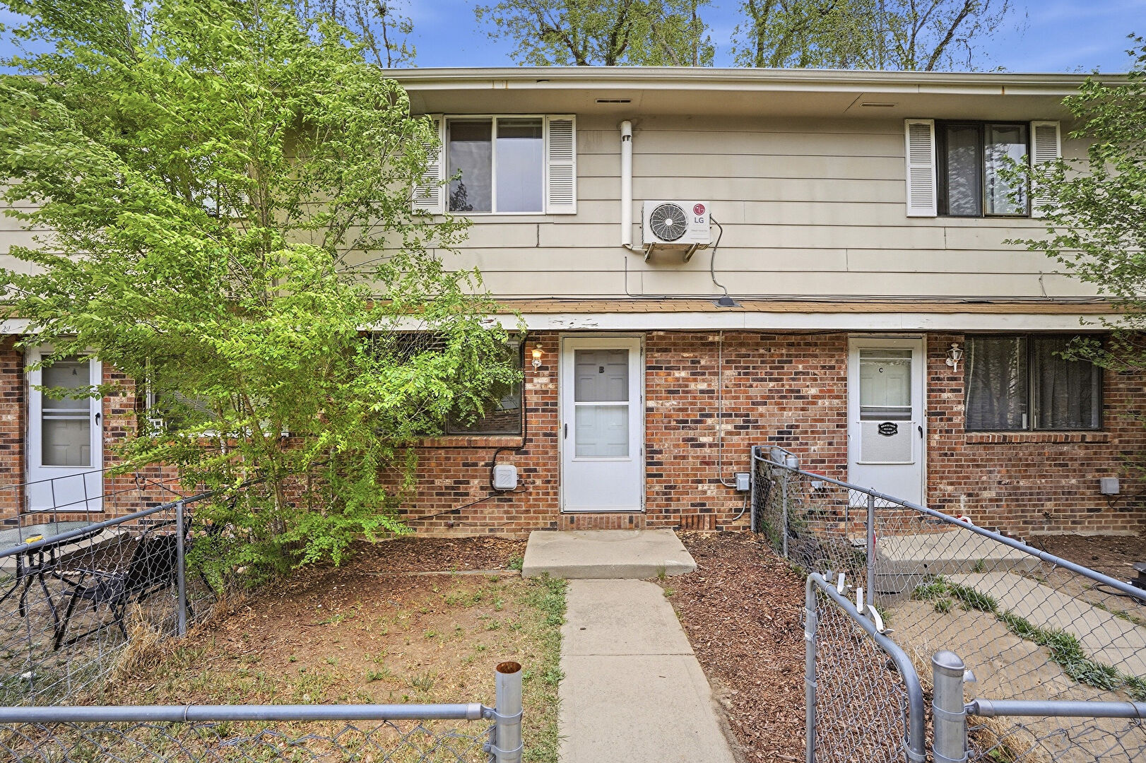 Brick Siding, Downspout, Fence, Gate, Gutters, Horizontal Siding, Lawn, Residential View, Split Ac Unit, Brick Siding, Fence, Horizontal Siding