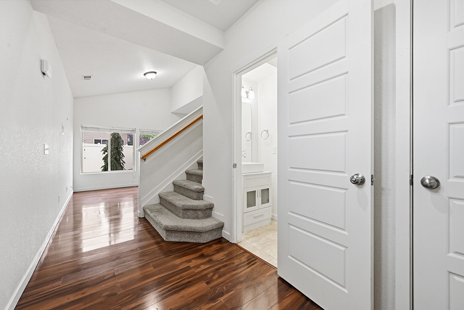 Baseboards Wall, Natural Light, Stairs, Vent, Wood Finish Floor
