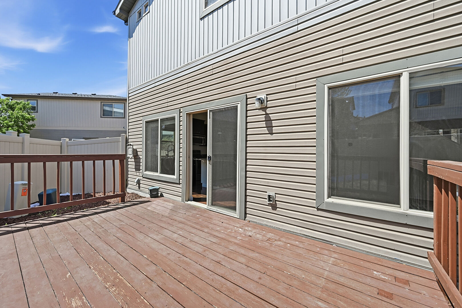 Deck, Downspout, Fence, Gutters, Horizontal Siding, Vertical Siding, Lawn