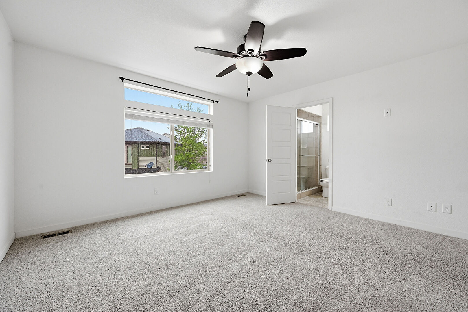 Baseboards Wall, Carpet, Ceiling Fan, Closet, Drywall, Ensuite Bathroom, Natural Light, Vent, Baseboards Wall, Ceiling Fan, Natural Light