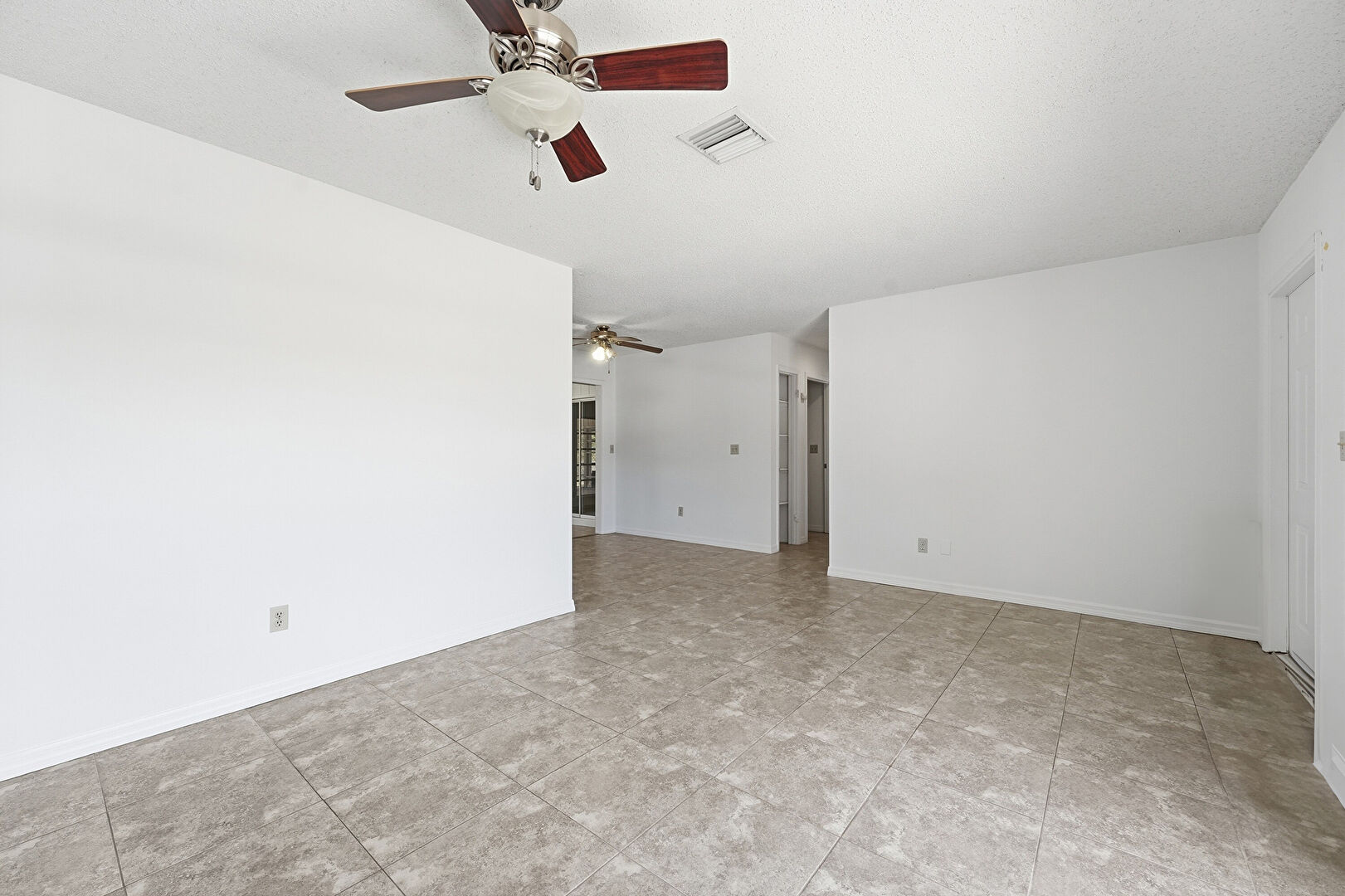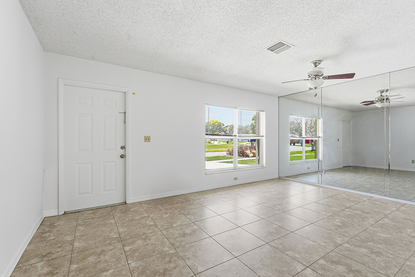 Baseboards Wall, Ceiling Fan, Drywall, Natural Light, Textured Ceiling, Tile Floor, Vent, Drywall, Natural Light, Tile Floor, Vent