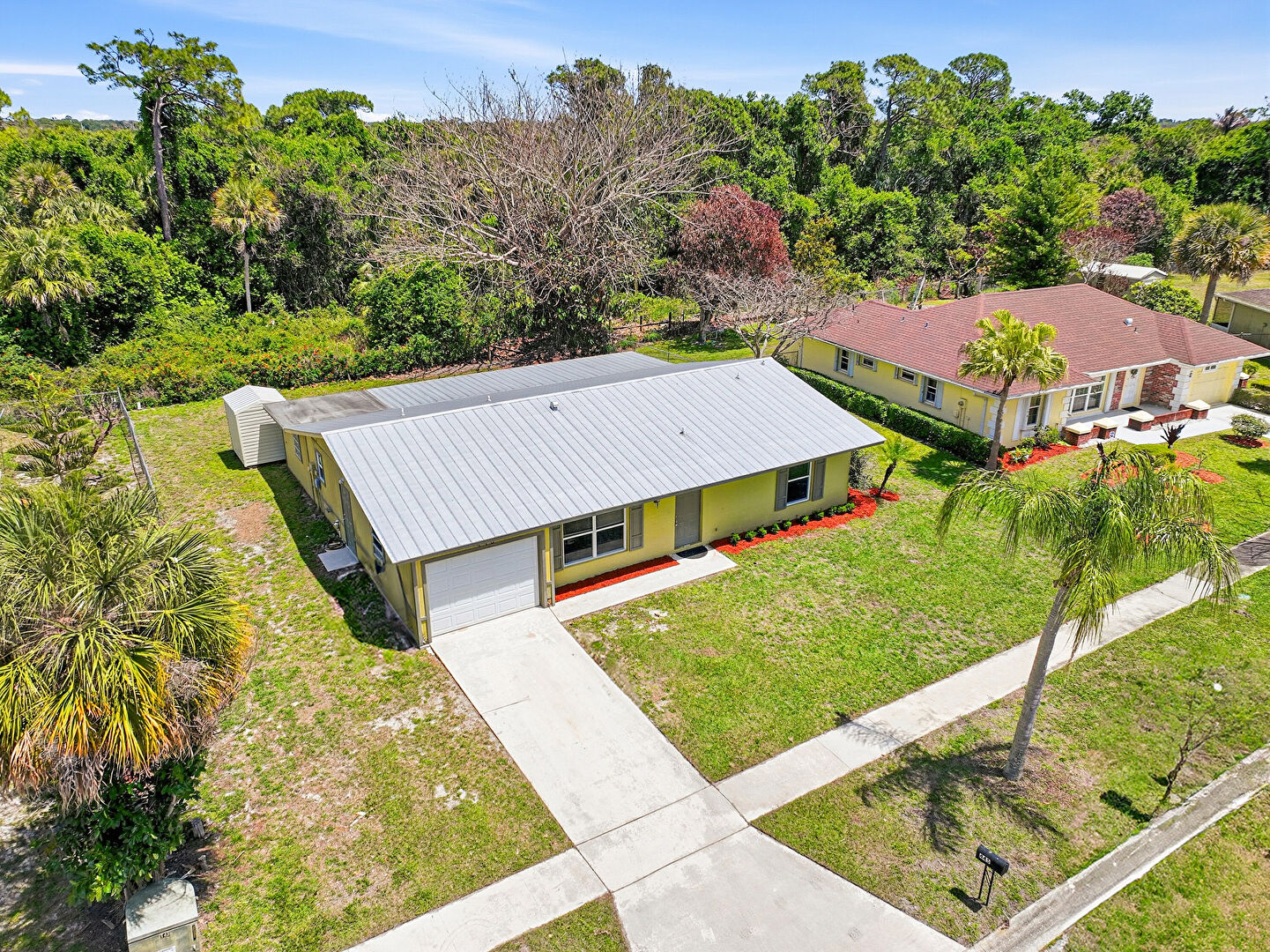 Driveway, Fence, Lawn, Metal Roof, Stucco Siding, Central Ac, Driveway, Lawn, Metal Roof, Stucco Siding