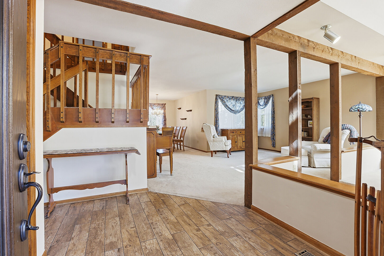 Baseboards Wall, Carpet, Drywall, Natural Light, Stairs, Wood Finish Floor
