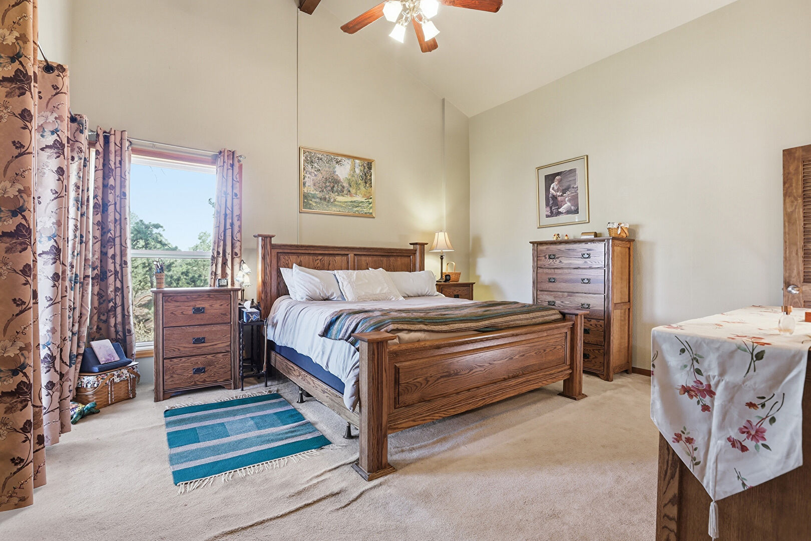 Access To Exterior, Baseboards Wall, Beamed Ceiling, Carpet, Ceiling Fan, Closet, Drywall, High Ceiling, Natural Light, Vaulted Ceiling, Vent, Walk In Closet, Wood Finish Floor, Baseboards Wall, Carpet, Ceiling Fan, Drywall, High Ceiling, Vaulted Ceiling