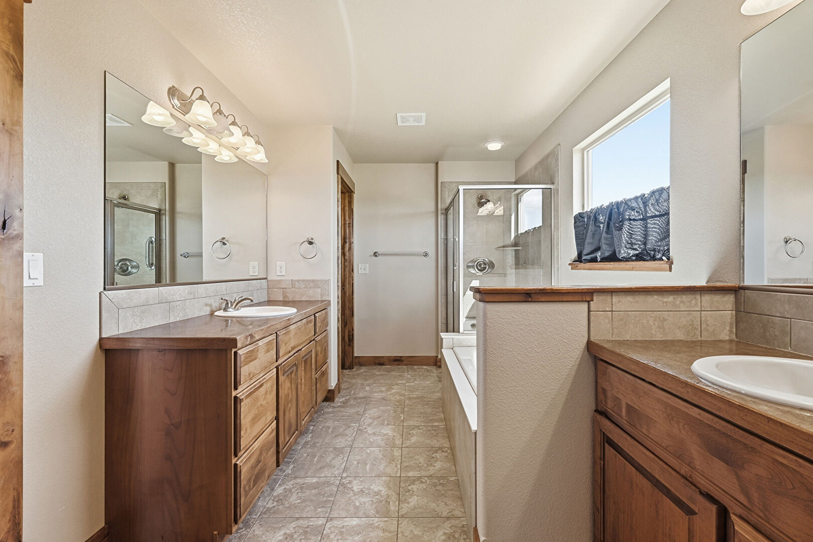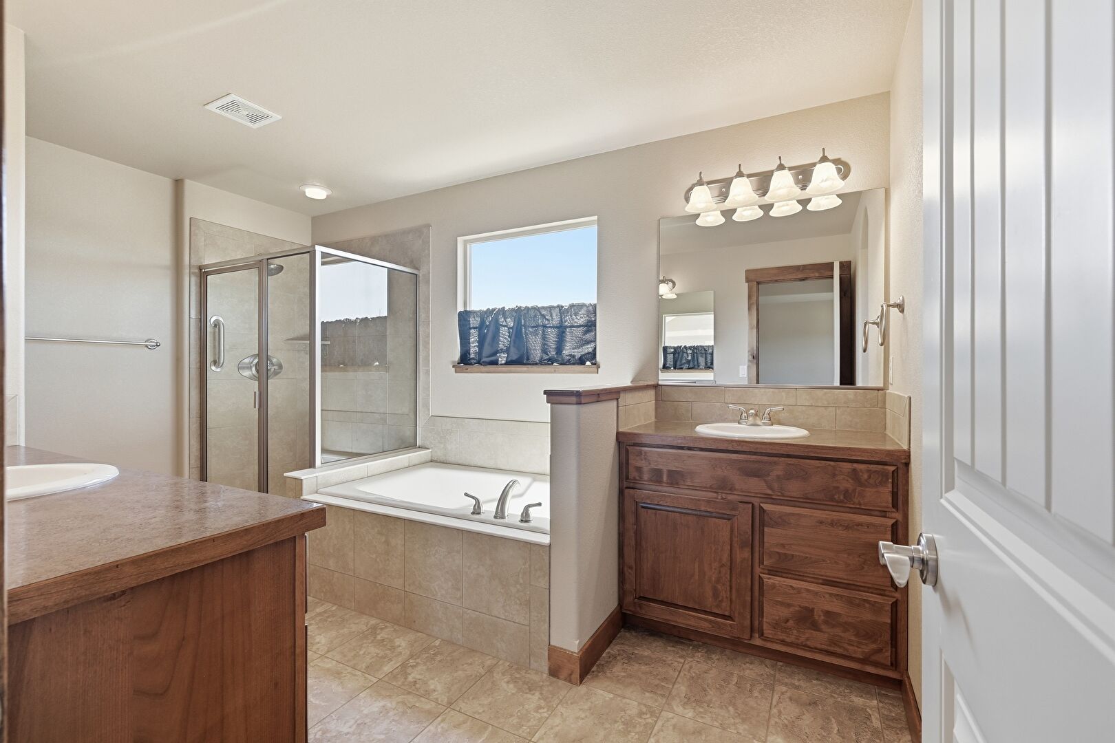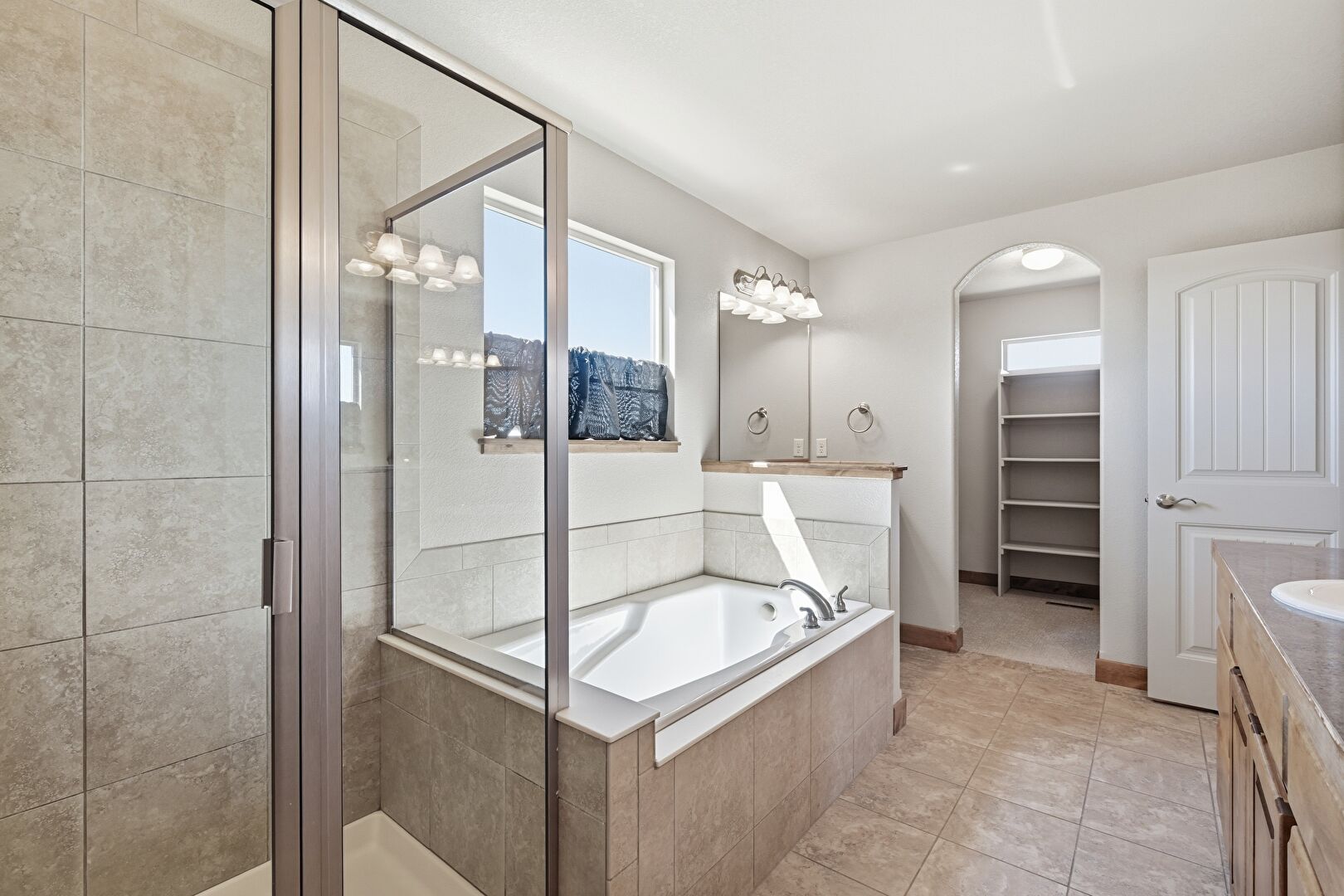 Baseboards Wall, Drywall, Full Bathroom, Natural Light, Recessed Lighting, Tile Floor, Two Single Vanities, Vanity, Vent, Walk In Closet, Full Bathroom, Tile Floor, Two Single Vanities