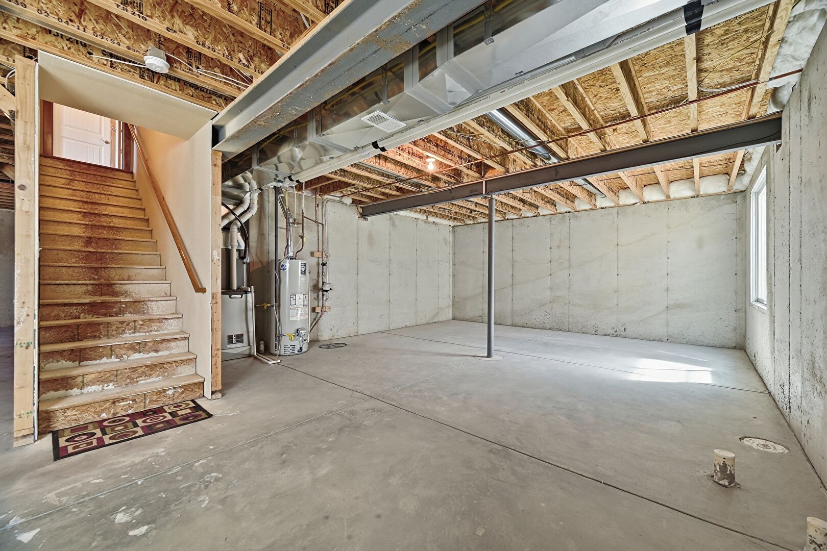 Concrete Foundation, Natural Light, Smoke Carbon Monoxide Detector, Stairs, Vent, Water Heater, Basement