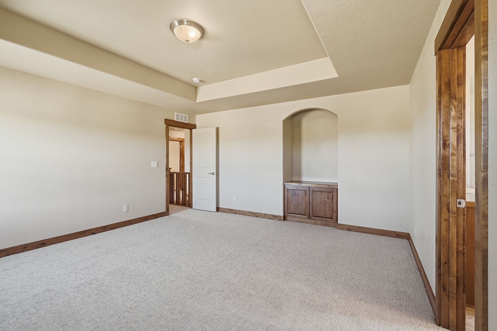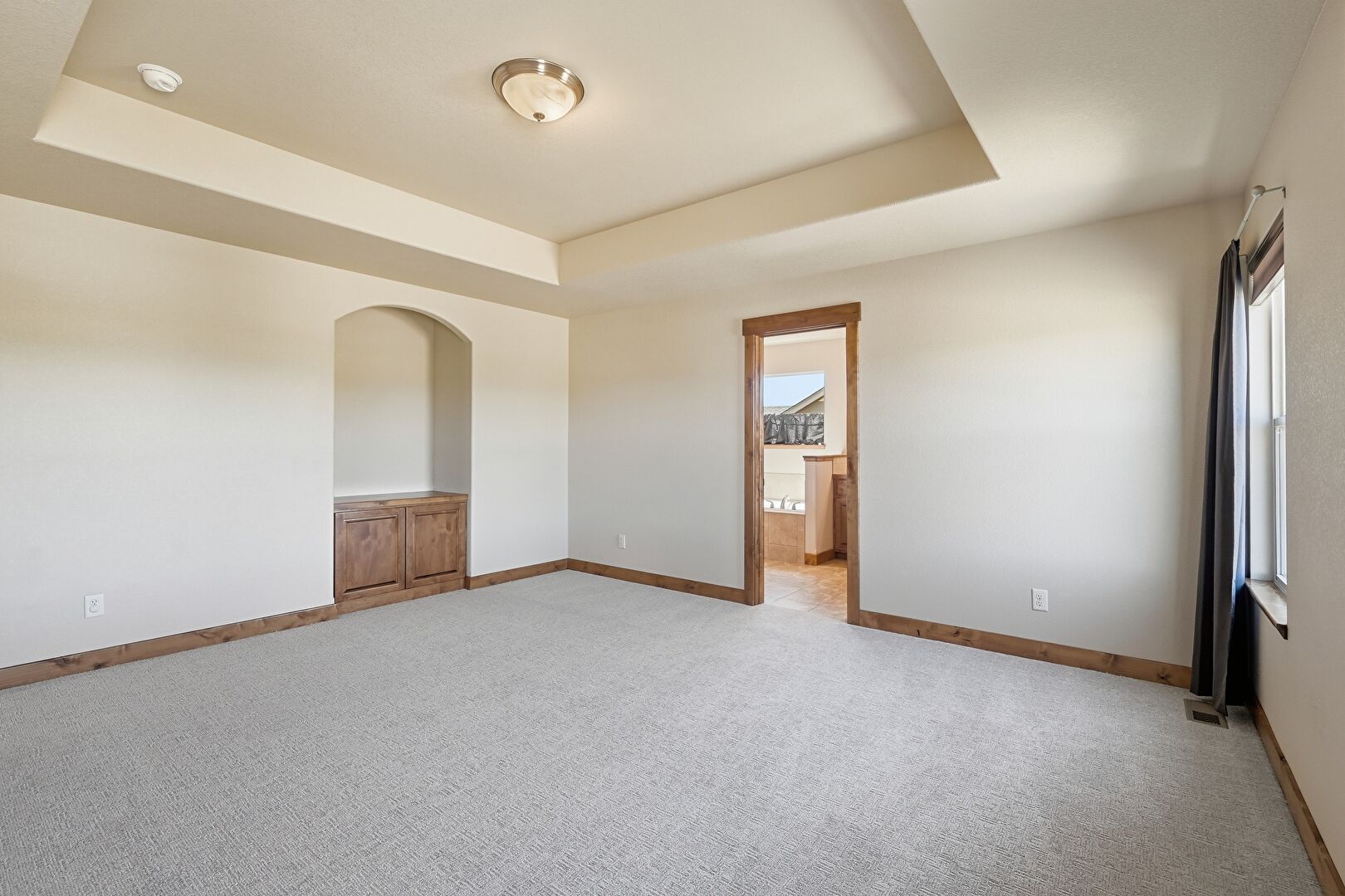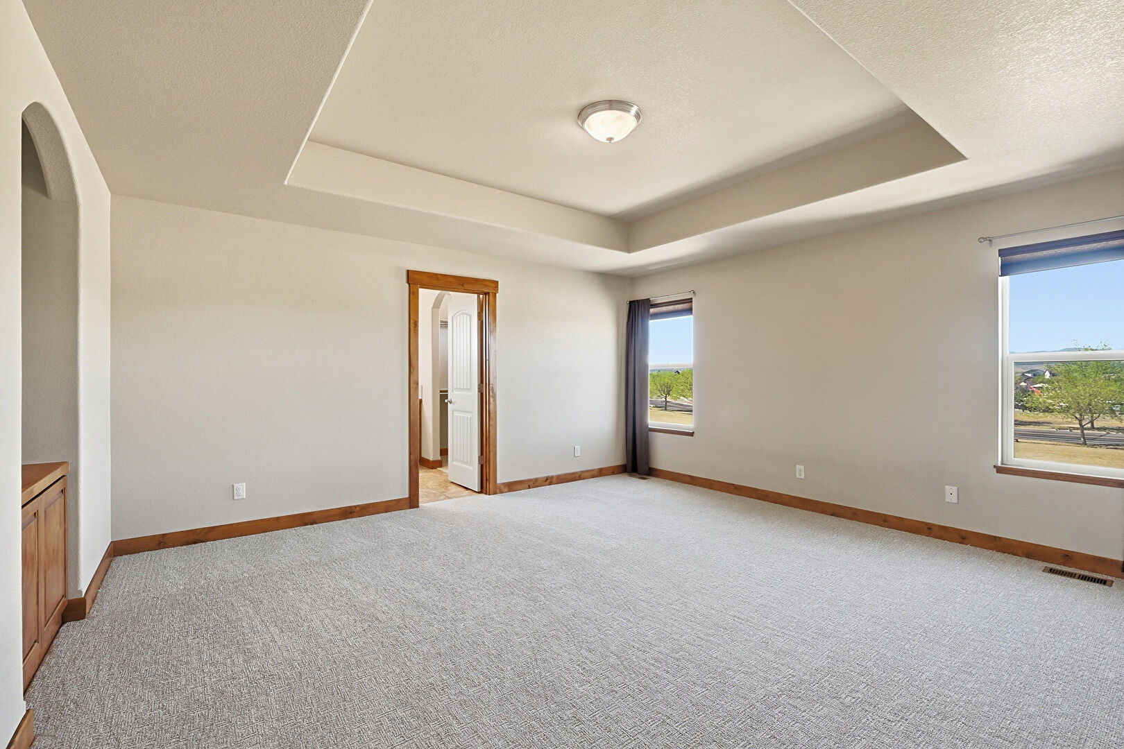 Arched Walkways, Baseboards Wall, Carpet, Drywall, Natural Light, Smoke Carbon Monoxide Detector, Textured Ceiling, Tray Ceiling, Vent, Natural Light, Tray Ceiling