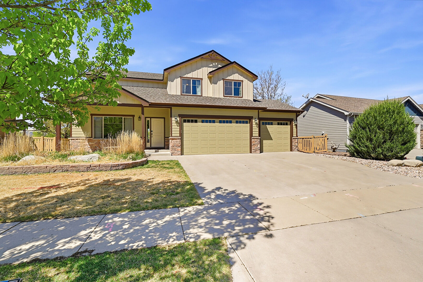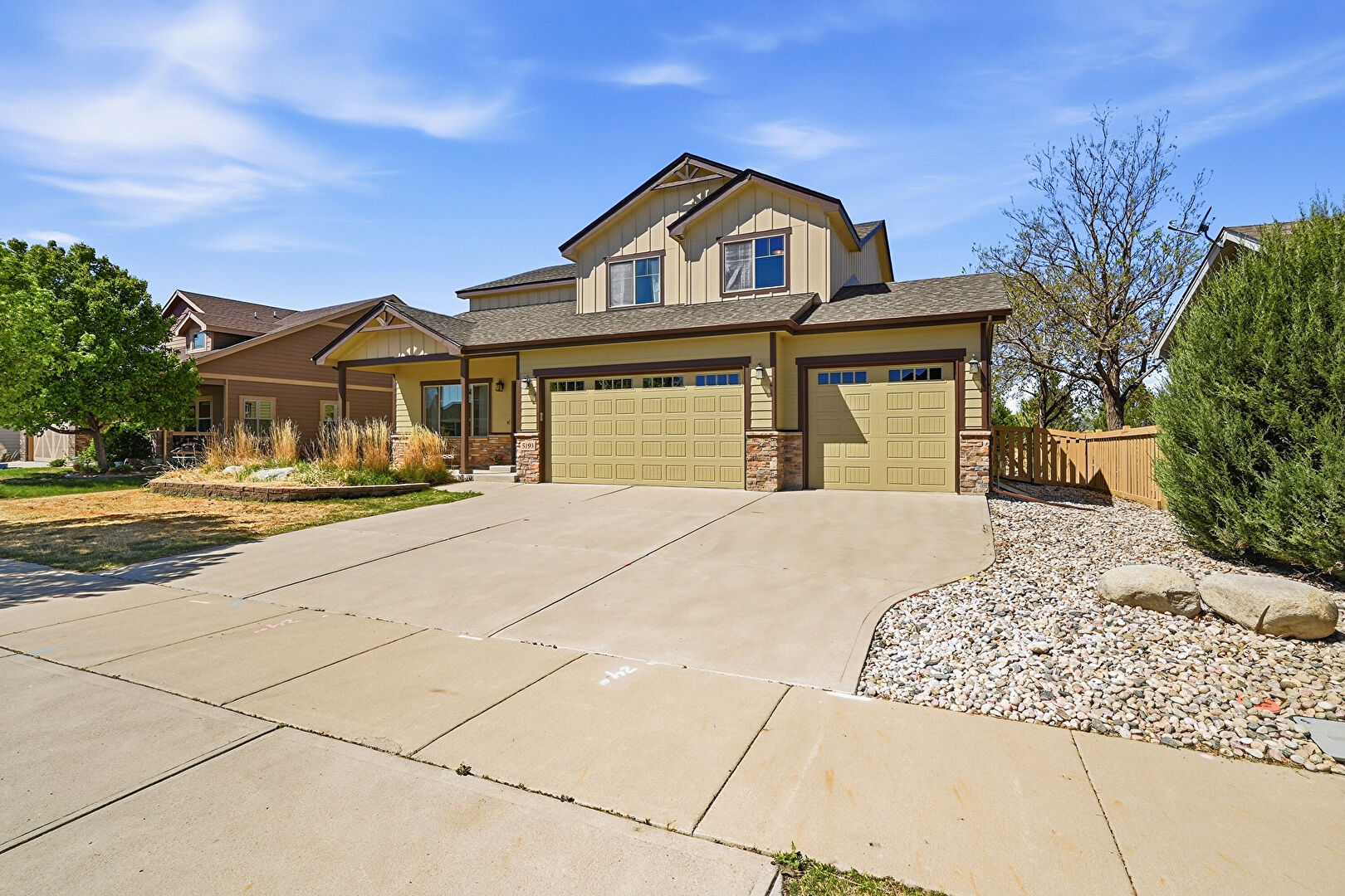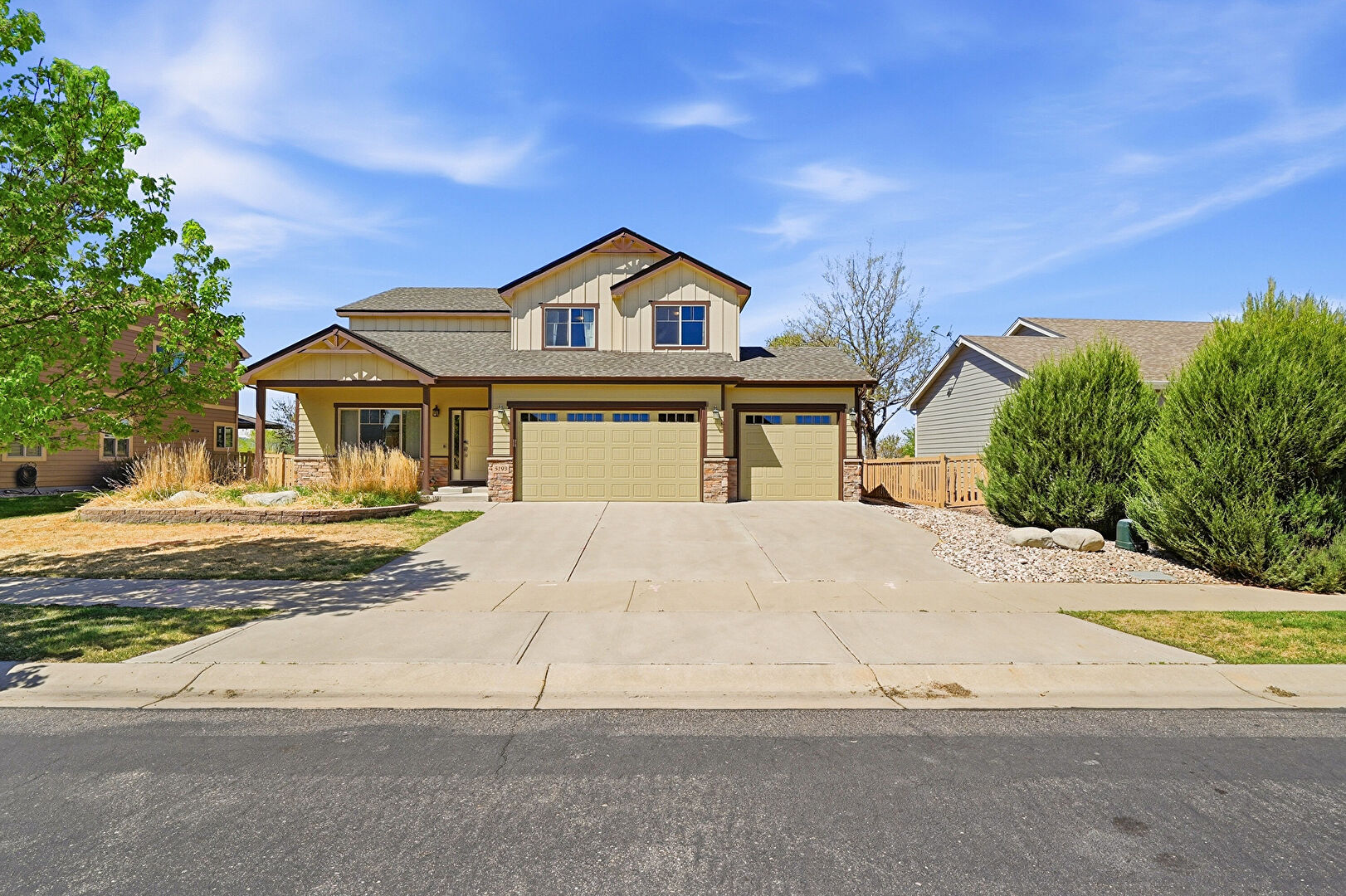 Board Batten Siding, Built In Garage, Downspout, Driveway, Fence, Horizontal Siding, Porch, Shingle Roof, Stone Siding, Vertical Siding, Board Batten Siding, Driveway, Fence