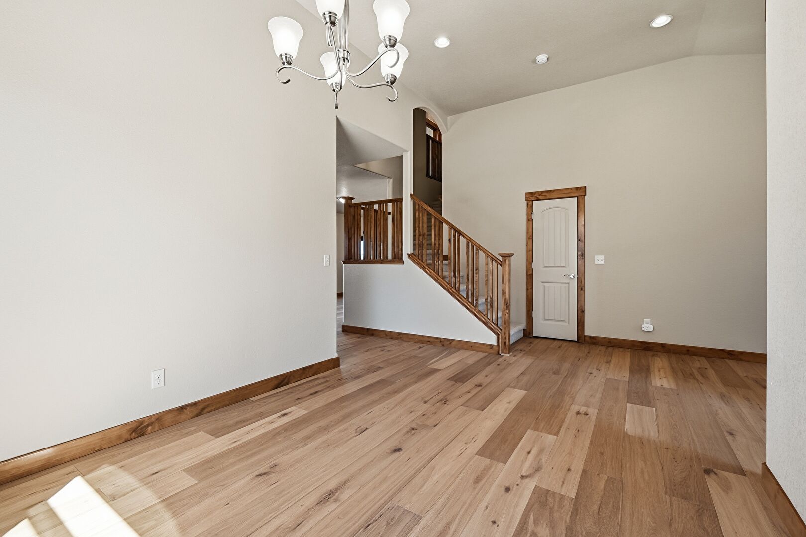 Baseboards Wall, Drywall, High Ceiling, Natural Light, Notable Chandelier, Recessed Lighting, Stairs, Vaulted Ceiling, Wood Finish Floor, Drywall, Notable Chandelier