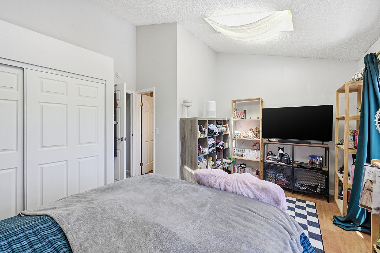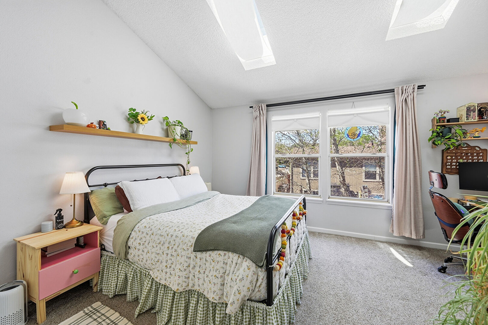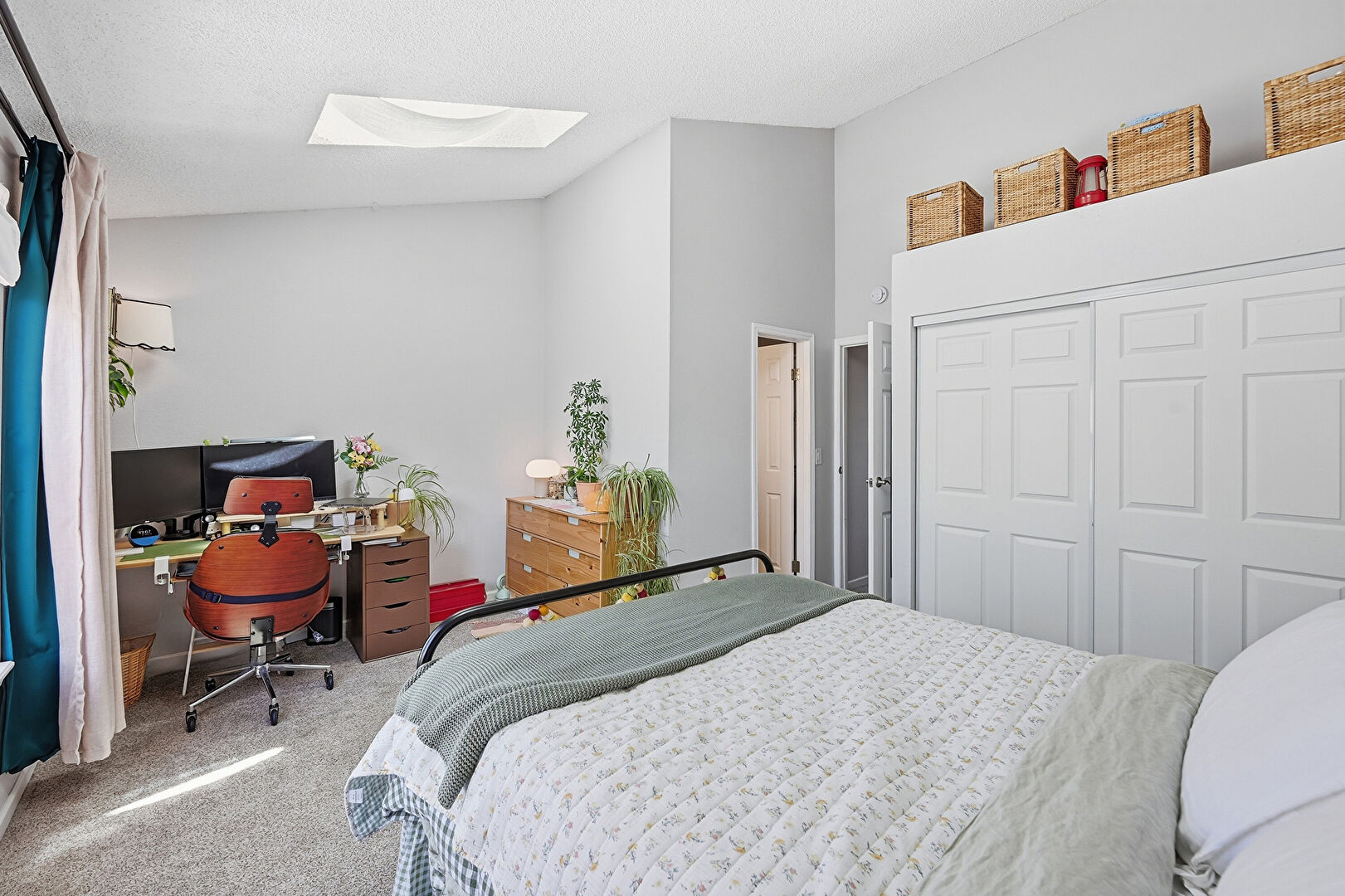 Baseboards Wall, Carpet, Closet, Dehumidifier, Drywall, High Ceiling, Natural Light, Office Area, Skylight, Textured Ceiling, Vaulted Ceiling, Wood Finish Floor, Carpet, Drywall, High Ceiling, Textured Ceiling