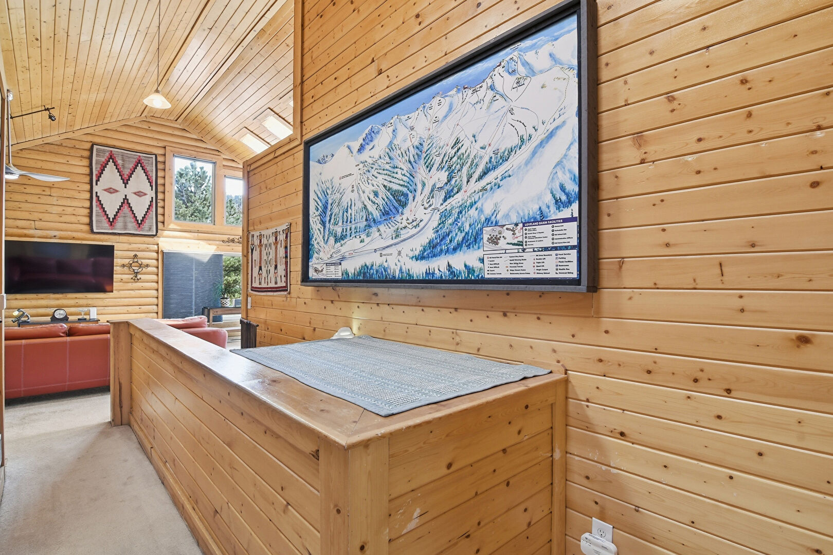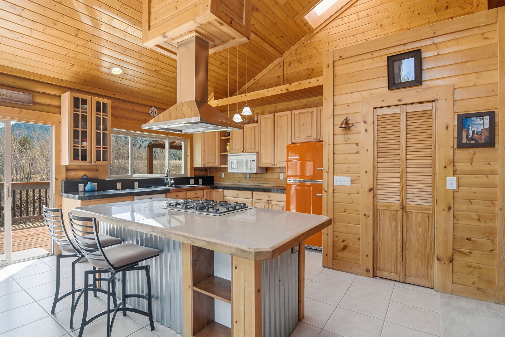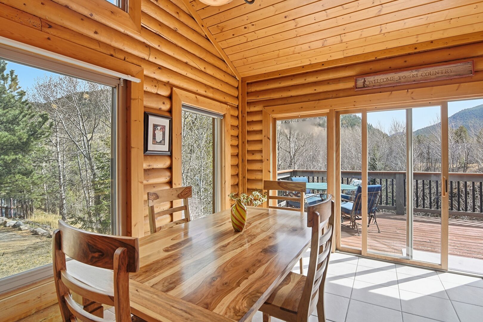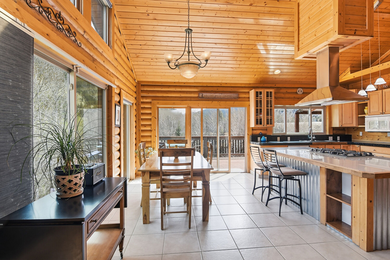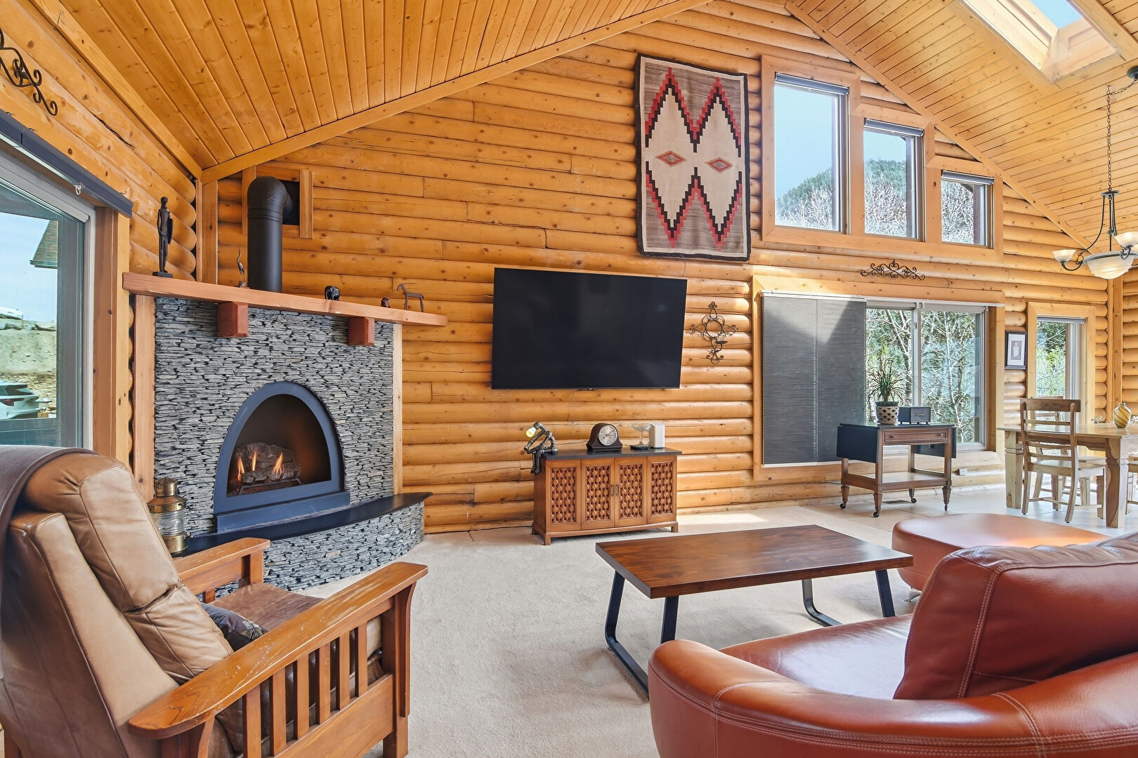 High Ceiling, Log Wall, Mountain View, Natural Light, Tile Floor, Wood Ceiling, Natural Light, Vaulted Ceiling