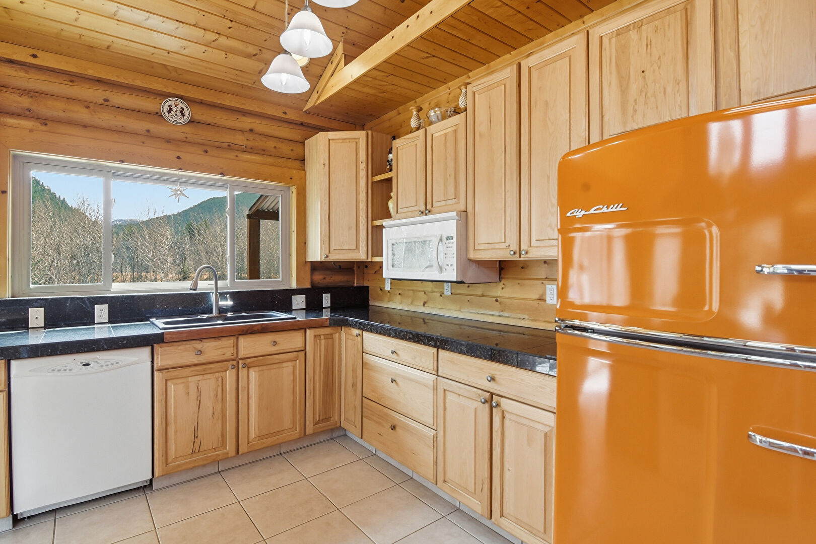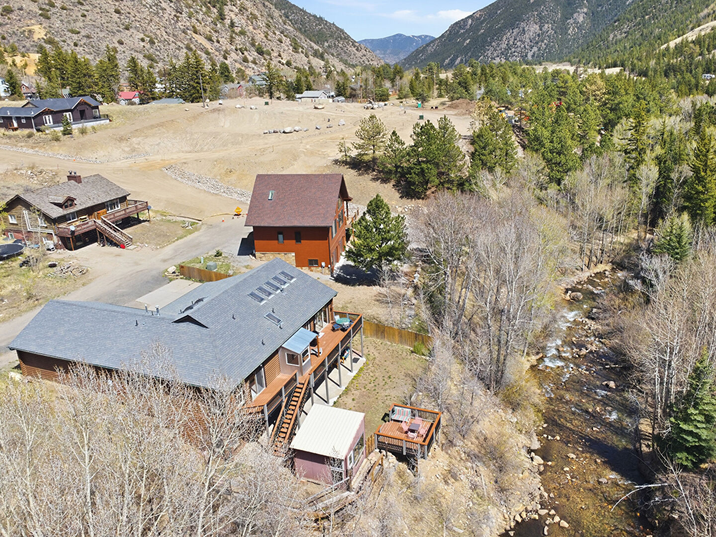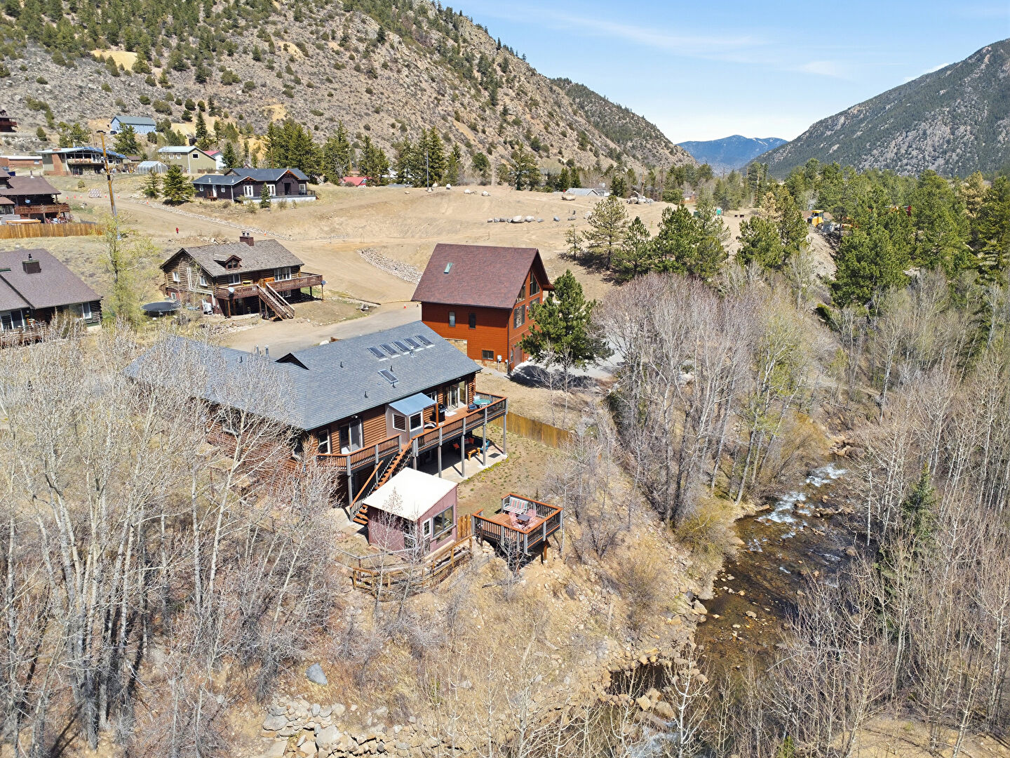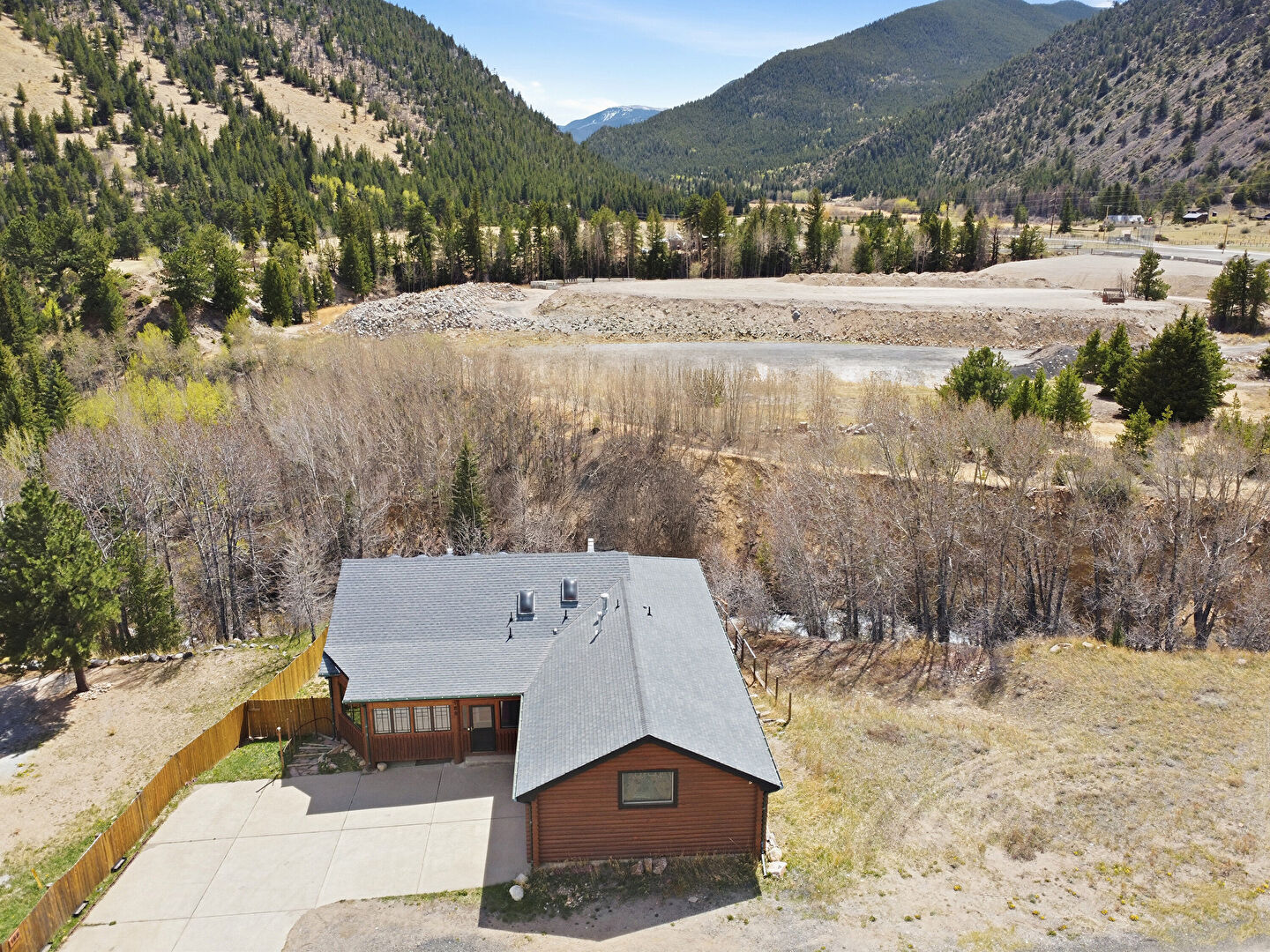 Awning, Deck, Downspout, Fence, Grill, Horizontal Siding, Log Siding, Mountain View, Patio, Shingle Roof, Stairs, Gutters
