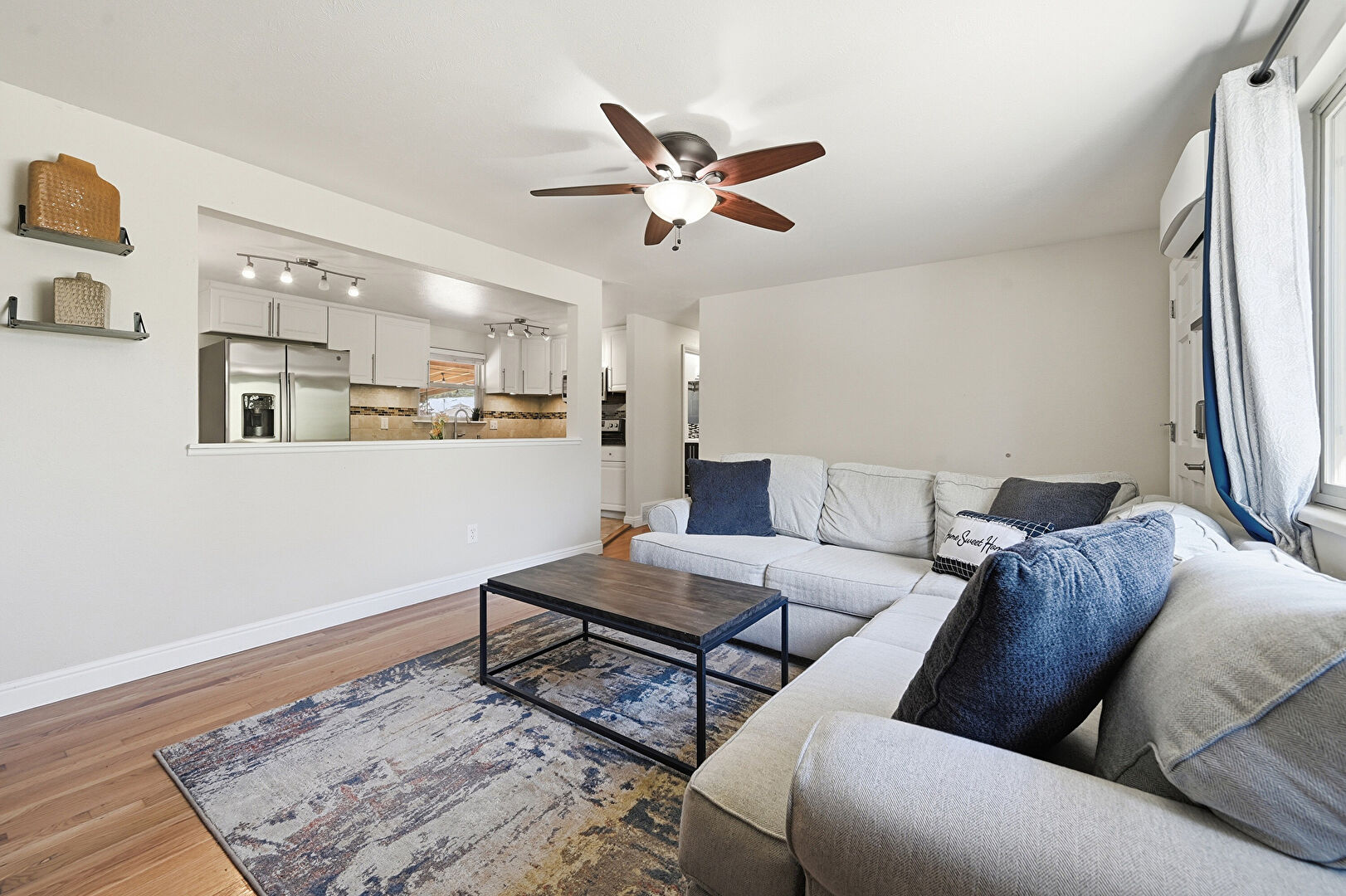 Baseboards Wall, Ceiling Fan, Drywall, Natural Light, Tile Floor, Track Lighting, Wall Mounted Ac, Wood Finish Floor, Ceiling Fan, Natural Light
