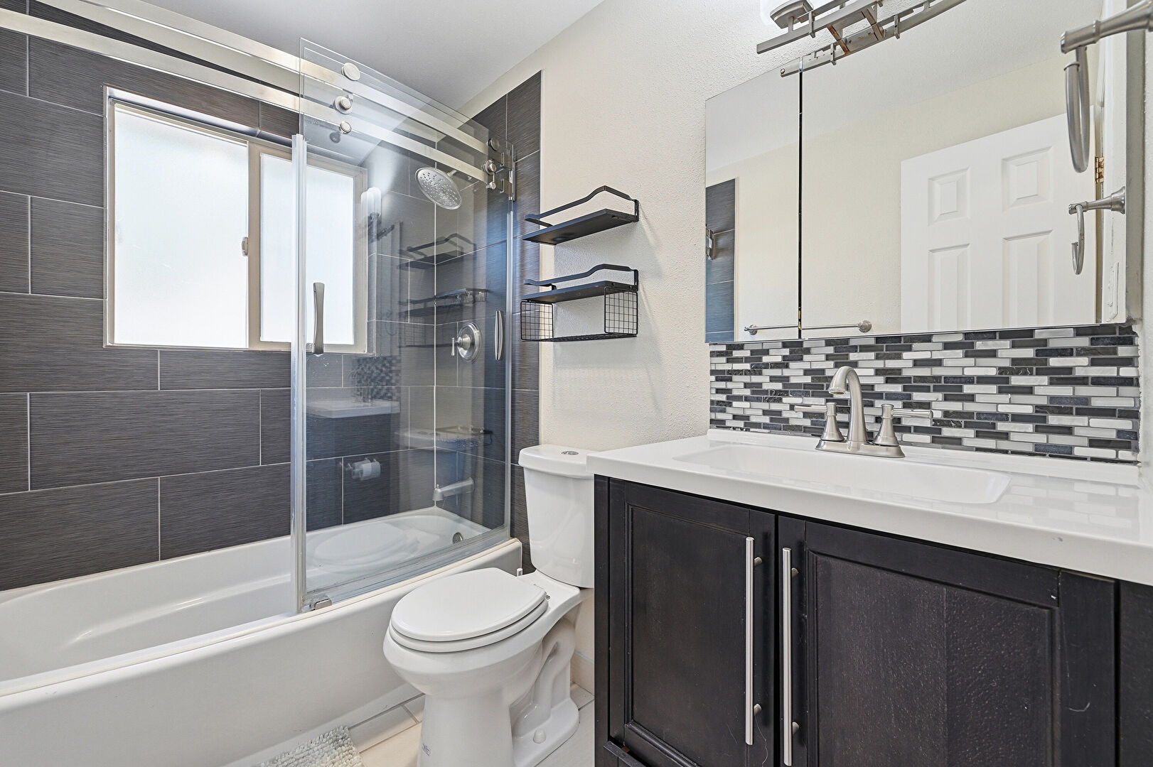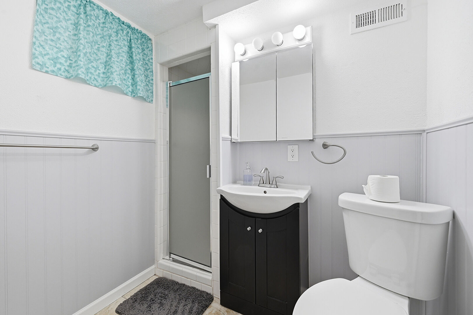 Drywall, Full Bathroom, Natural Light, Vanity, Vent, Wainscot Wall, Combined Bath Shower, Full Bathroom