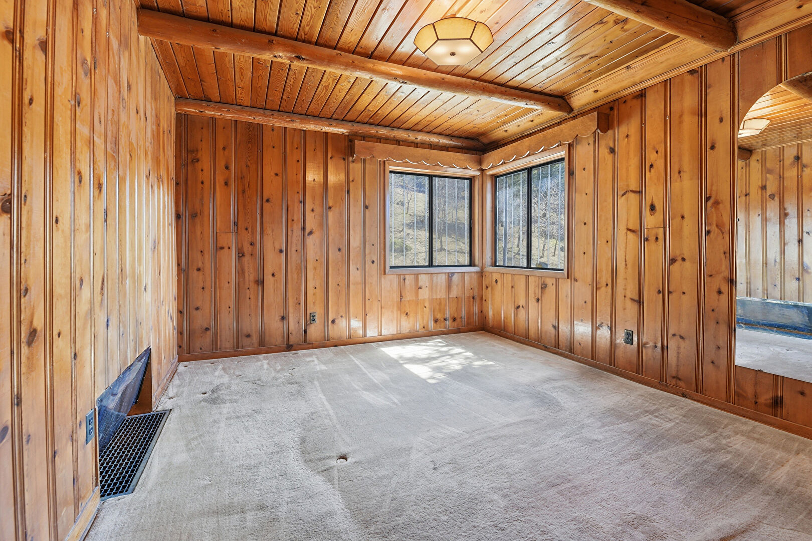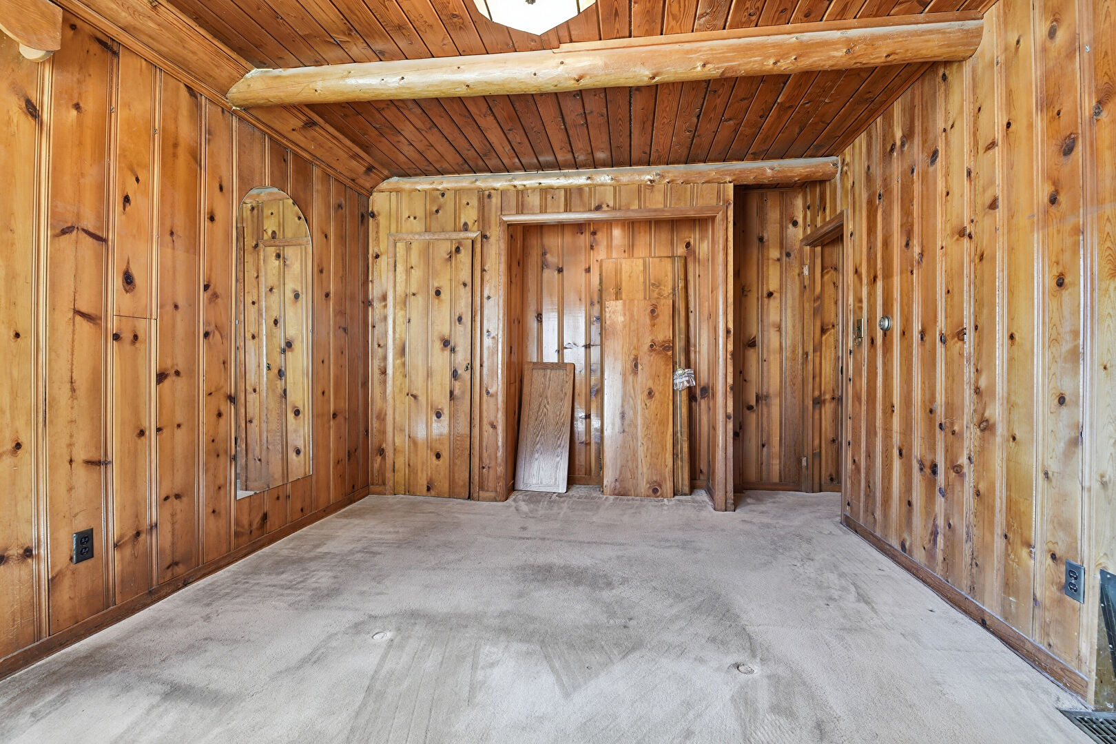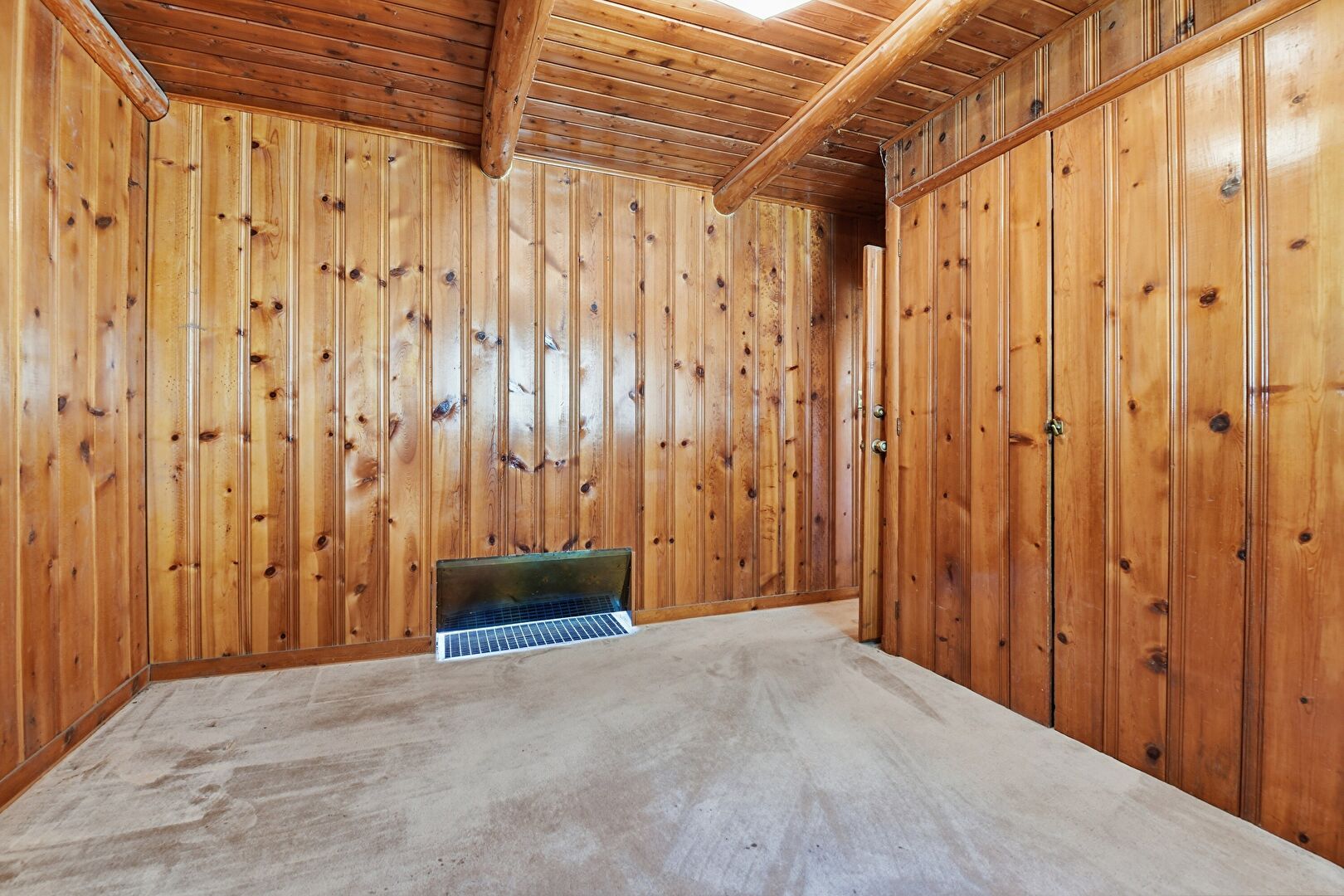 Baseboards Wall, Beamed Ceiling, Carpet, Natural Light, Wood Ceiling, Wood Wall, Beamed Ceiling, Wood Ceiling