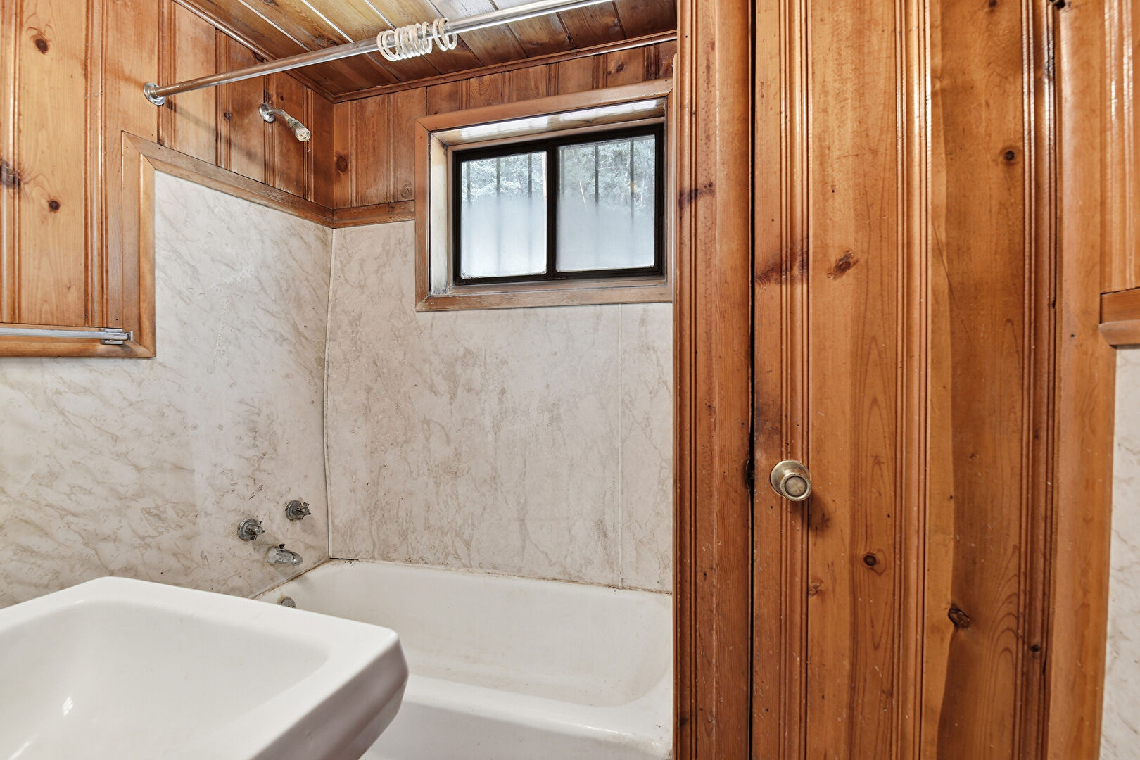 Combined Bath Shower, Full Bathroom, Half Bathroom, Natural Light, Wood Ceiling, Natural Light, Wood Wall