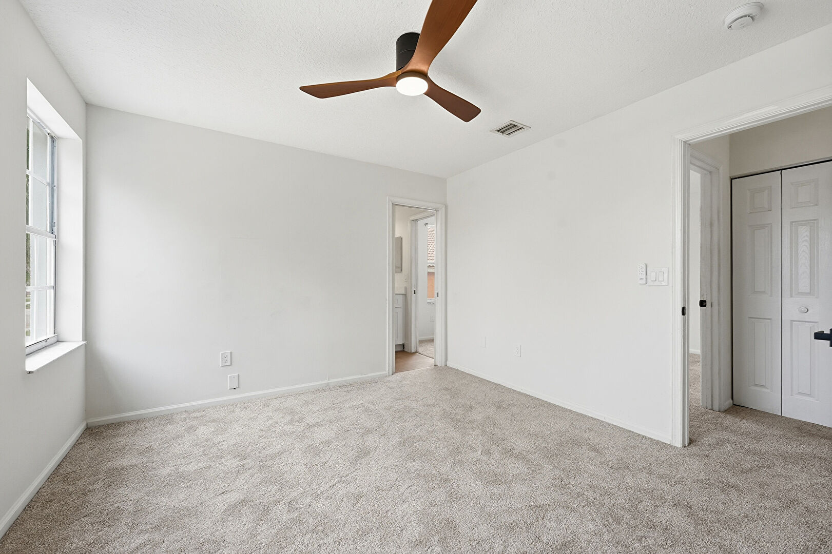 Baseboards Wall, Carpet, Ceiling Fan, Drywall, Ensuite Bathroom, Natural Light, Vent, Carpet, Ceiling Fan, Drywall