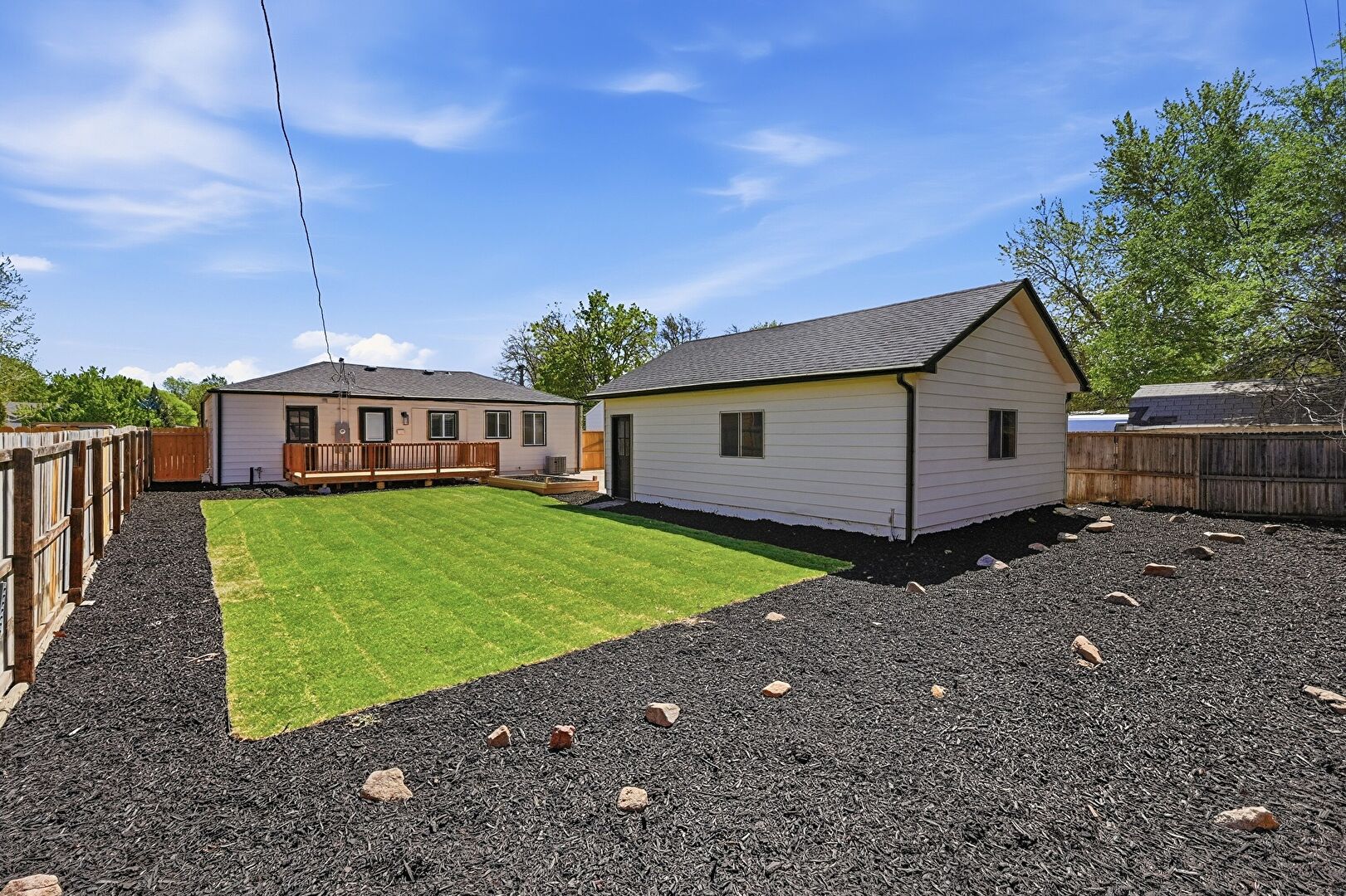 Deck, Detached Garage, Lawn, Outdoor Structure, Fence