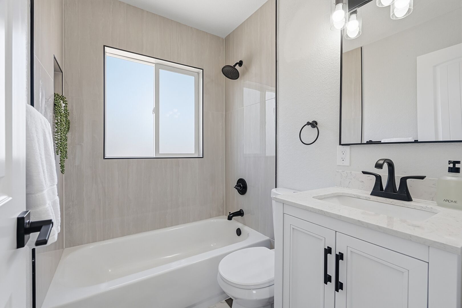 Combined Bath Shower, Natural Light, Vanity, Full Bathroom