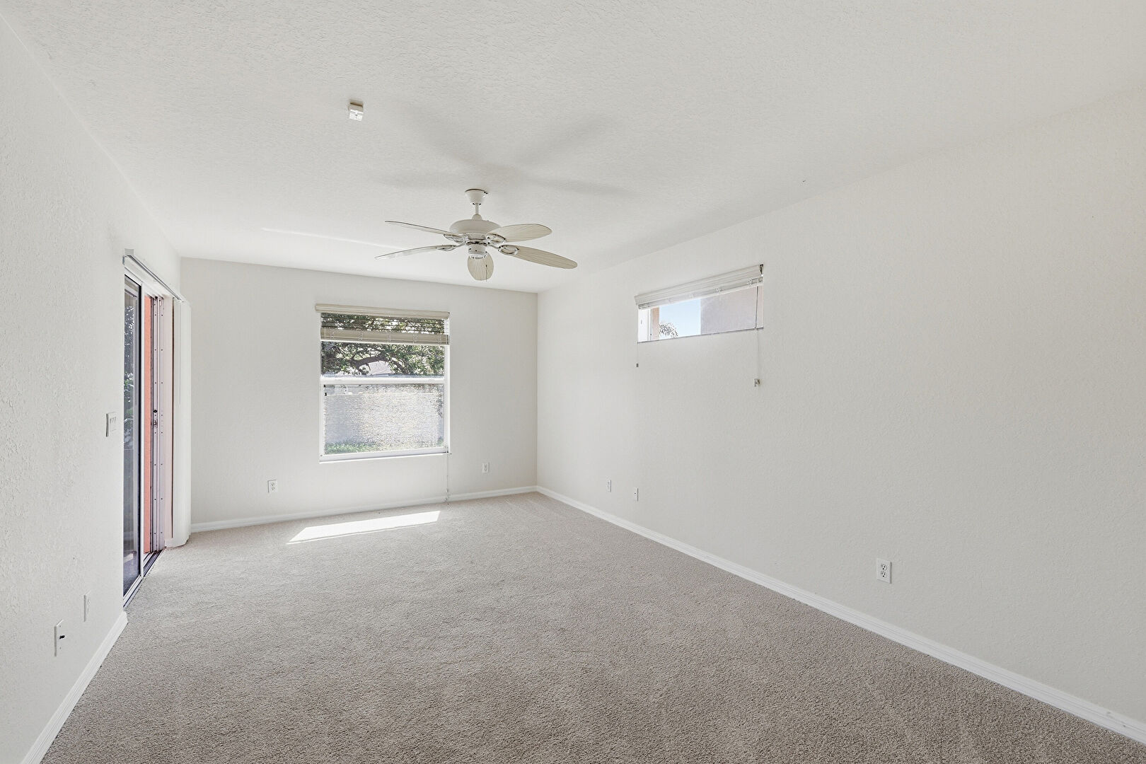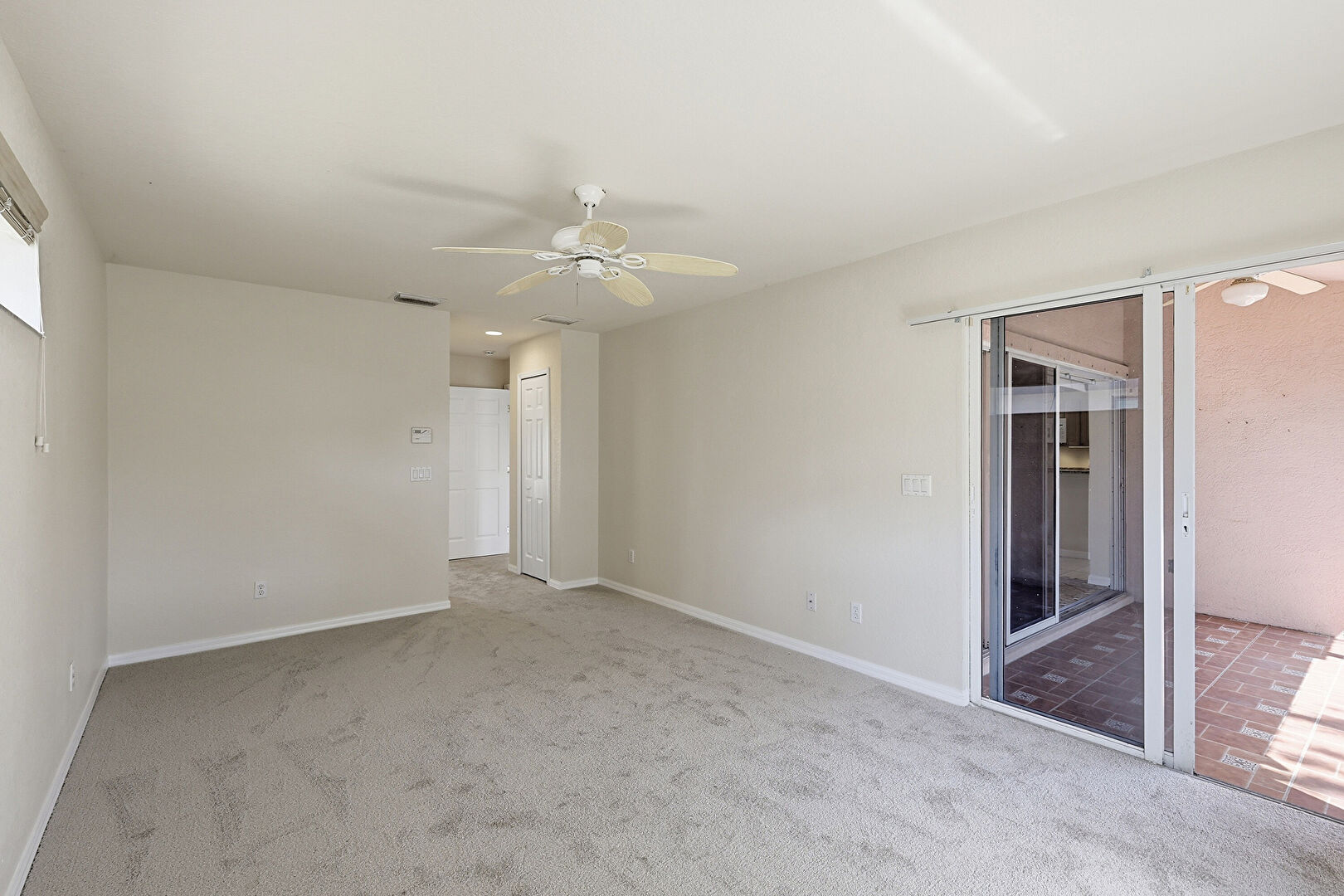 Access To Exterior, Baseboards Wall, Carpet, Ceiling Fan, Drywall, Natural Light, Recessed Lighting, Textured Ceiling, Vent, Baseboards Wall, Carpet, Ceiling Fan