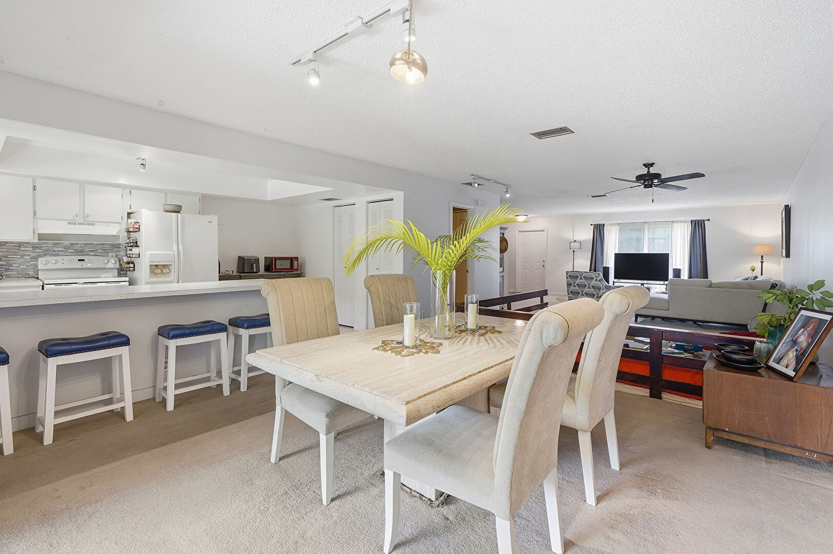 Baseboards Wall, Carpet, Ceiling Fan, Drywall, Natural Light, Textured Ceiling, Track Lighting, U Shaped Kitchen, Vent, Carpet, Drywall, Tile Floor
