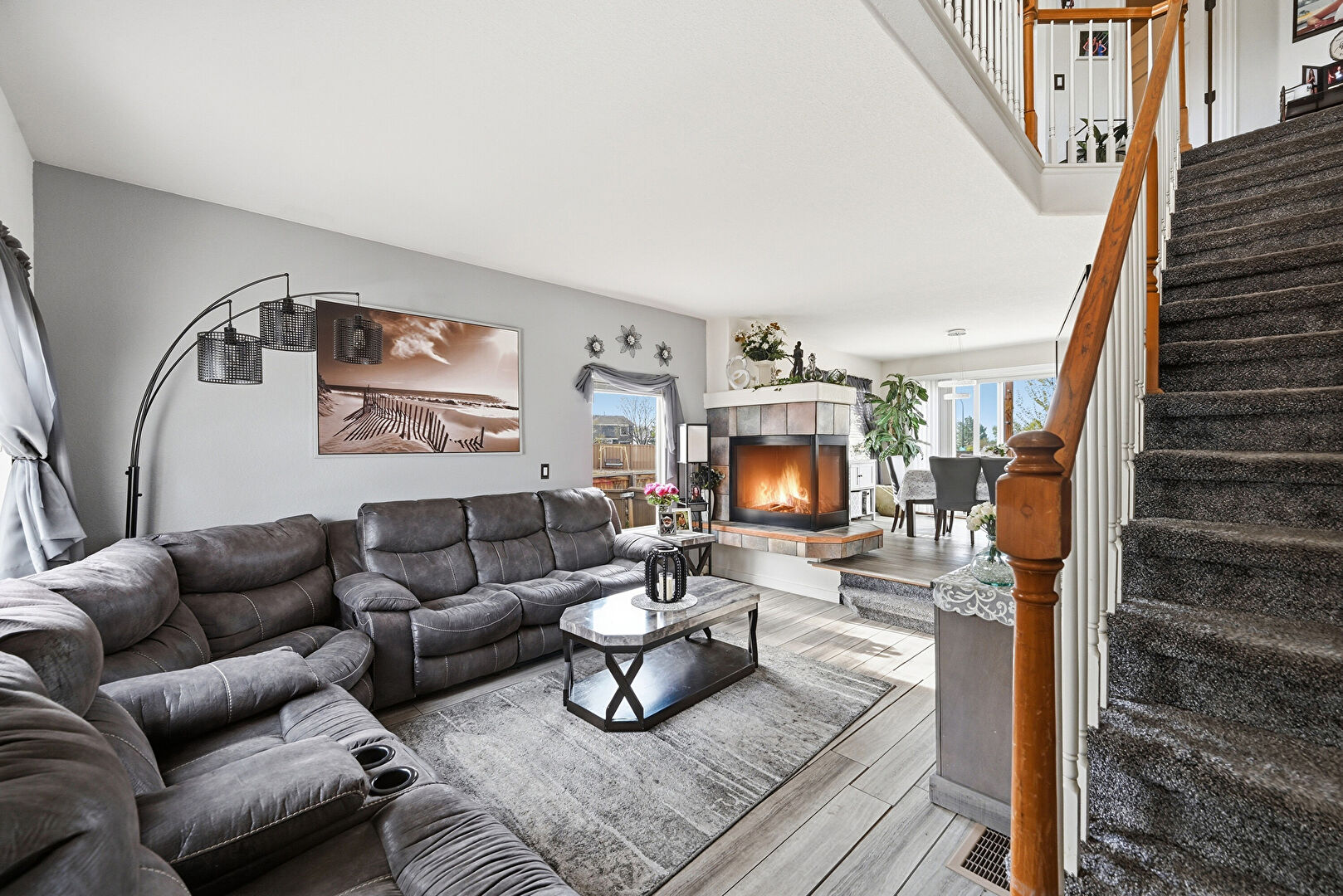 Drywall, Fireplace, Natural Light, Stairs, Vent, Wood Finish Floor, Drywall, Stairs, Wood Finish Floor