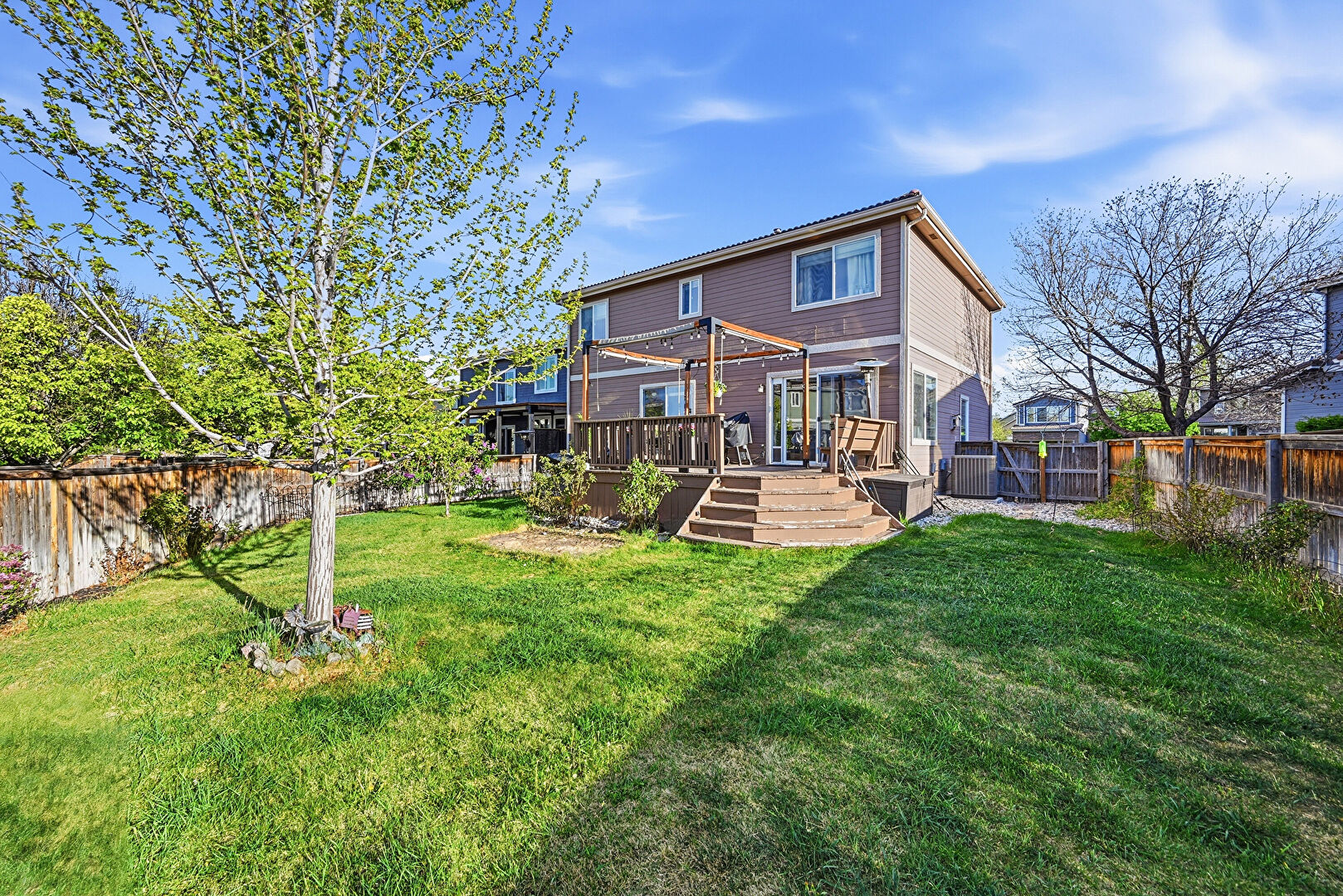 Central Ac, Concrete Foundation, Deck, Downspout, Electric Meter, Fence, Gutters, Horizontal Siding, Hot Tub, Lawn, Satellite Dish, Deck, Horizontal Siding