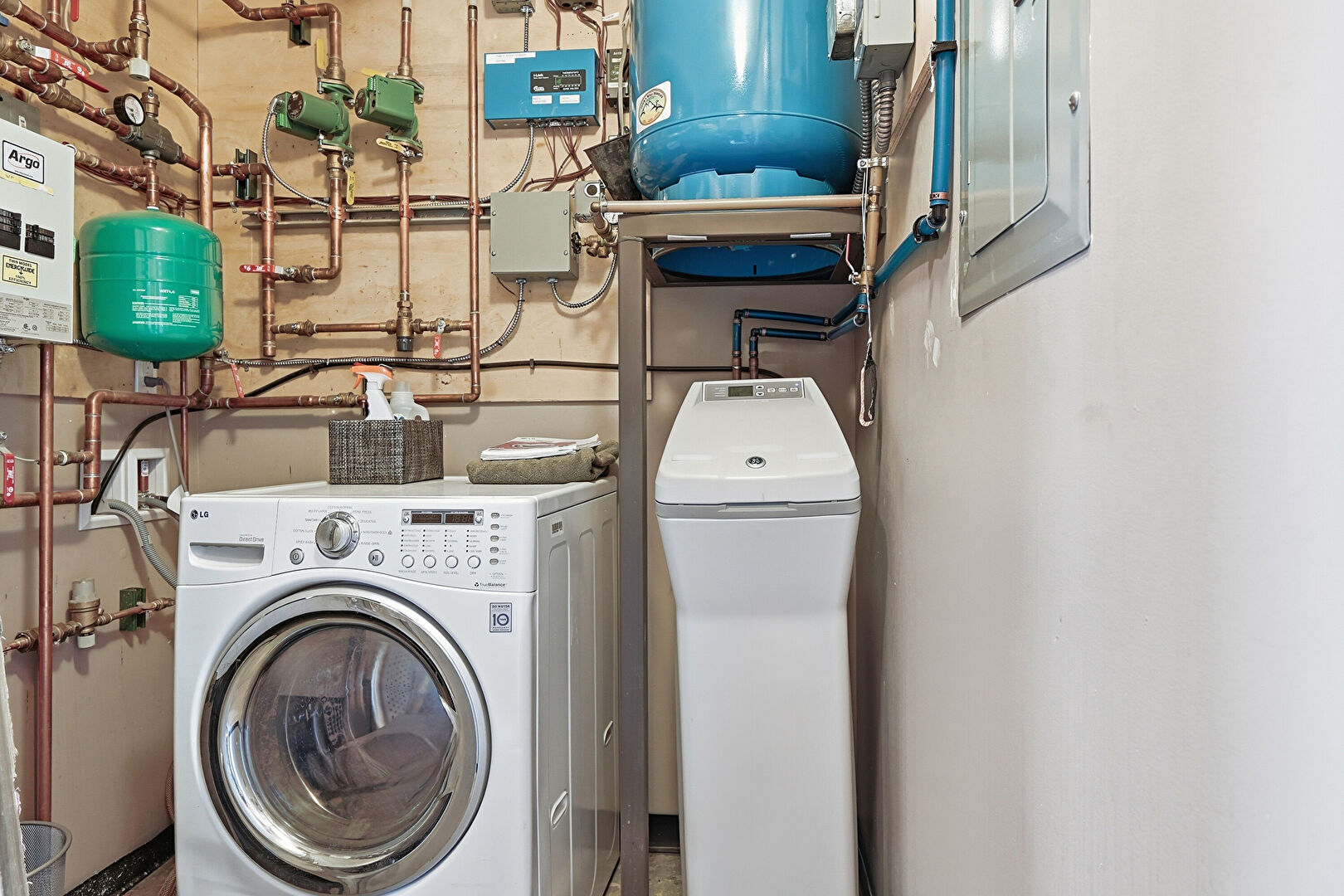 Basement, Drywall, Electric Panel, Laundry, Washer Dryer, Washer Hookup, Water Expansion Tank, Water Heater, Water Softener