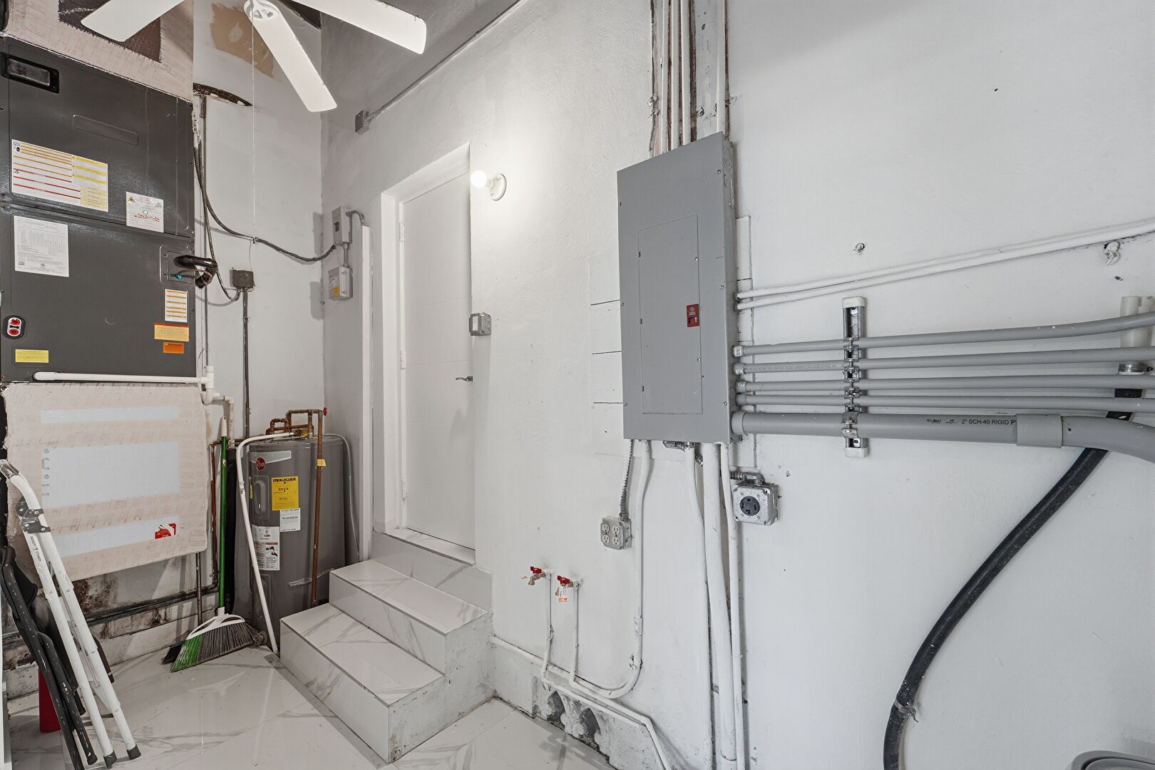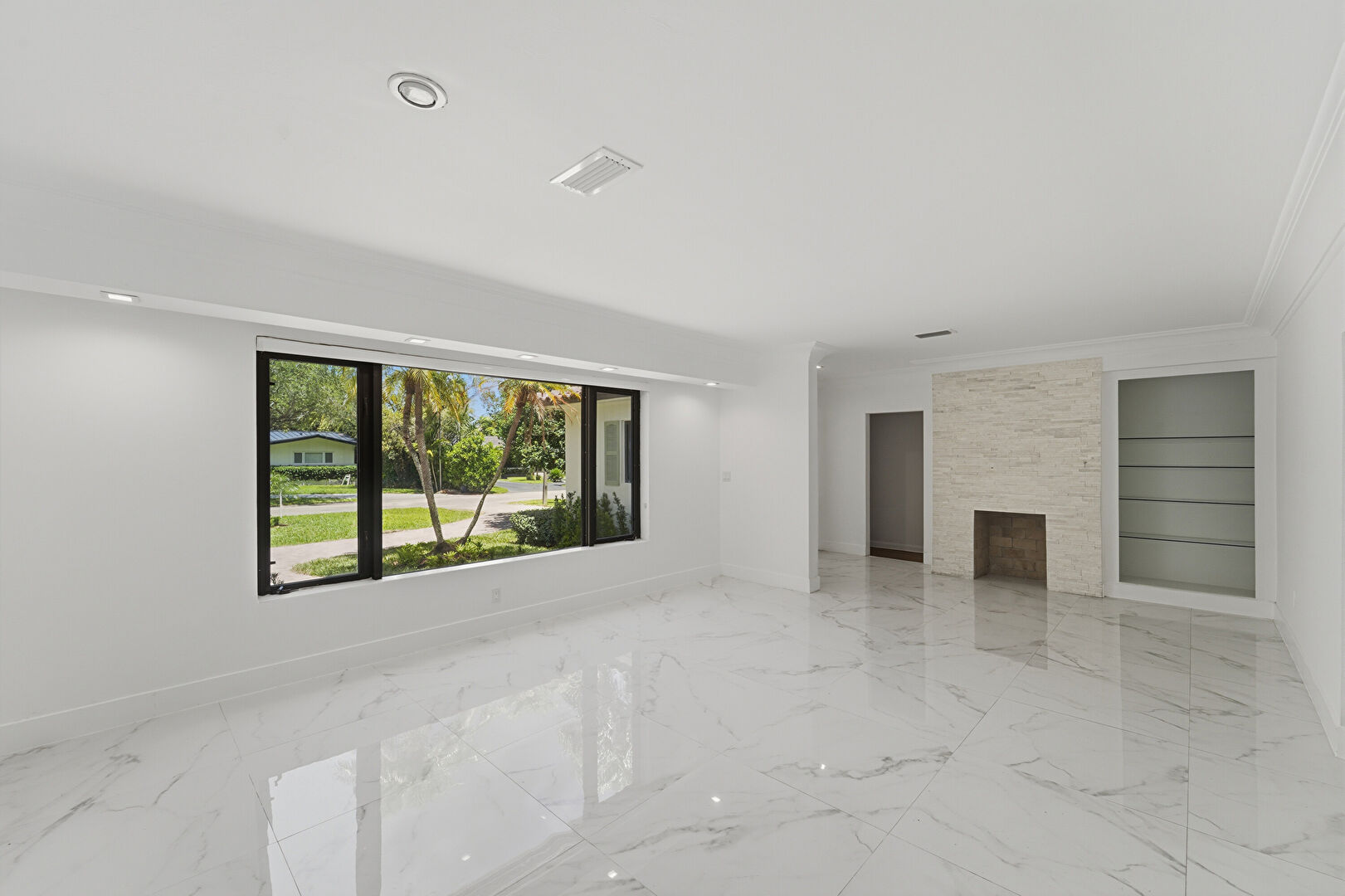Built In Shelves, Crown Molding, Drywall, Fireplace, Marble Finish Floor, Natural Light, Recessed Lighting, Vent, Baseboards Wall