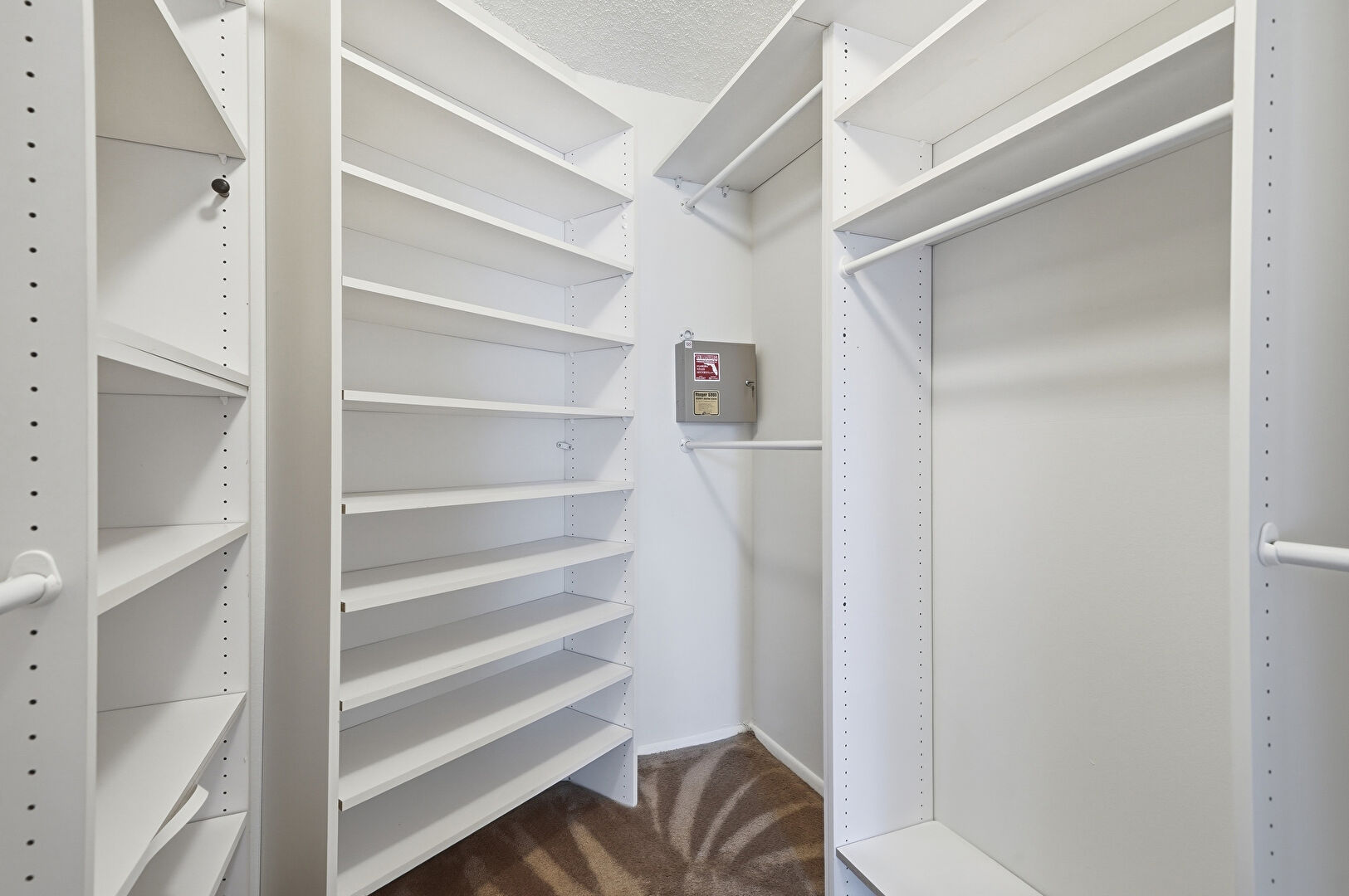 Baseboards Wall, Ceiling Fan, Closet, Drywall, Natural Light, Textured Ceiling, Vent, Carpet
