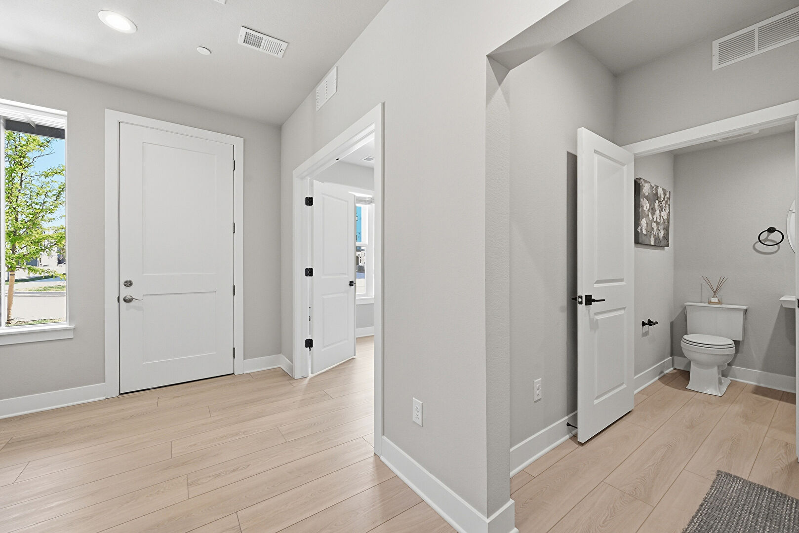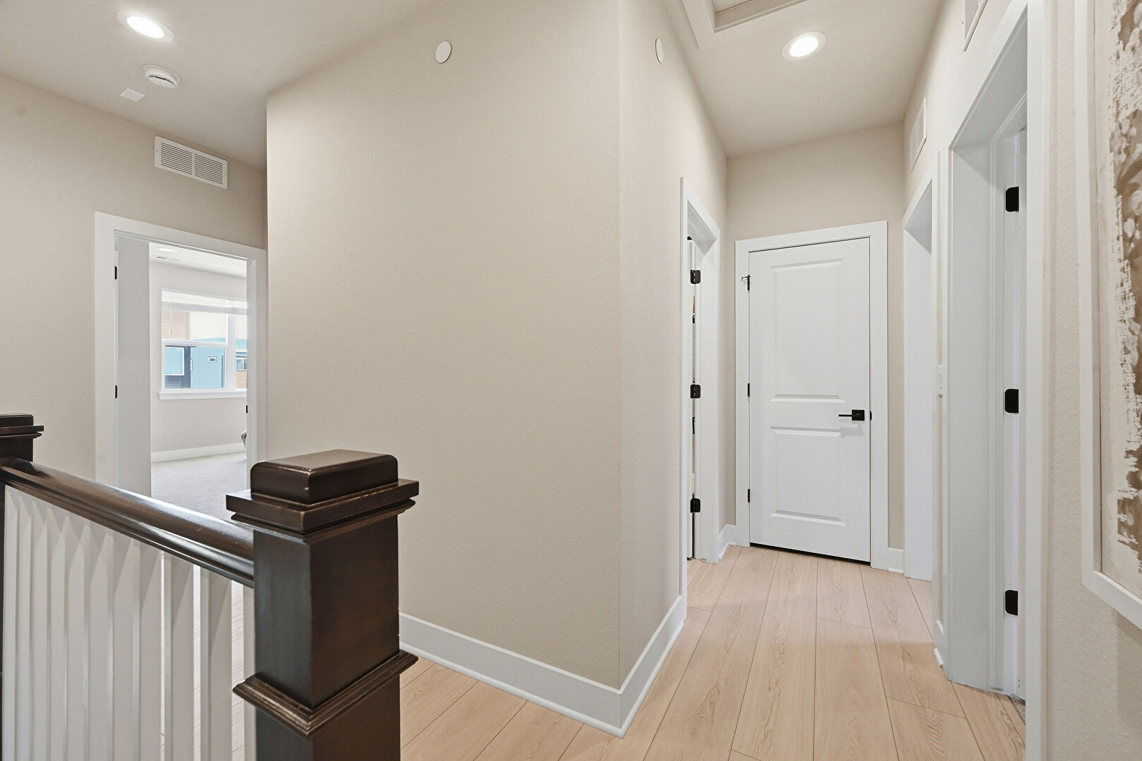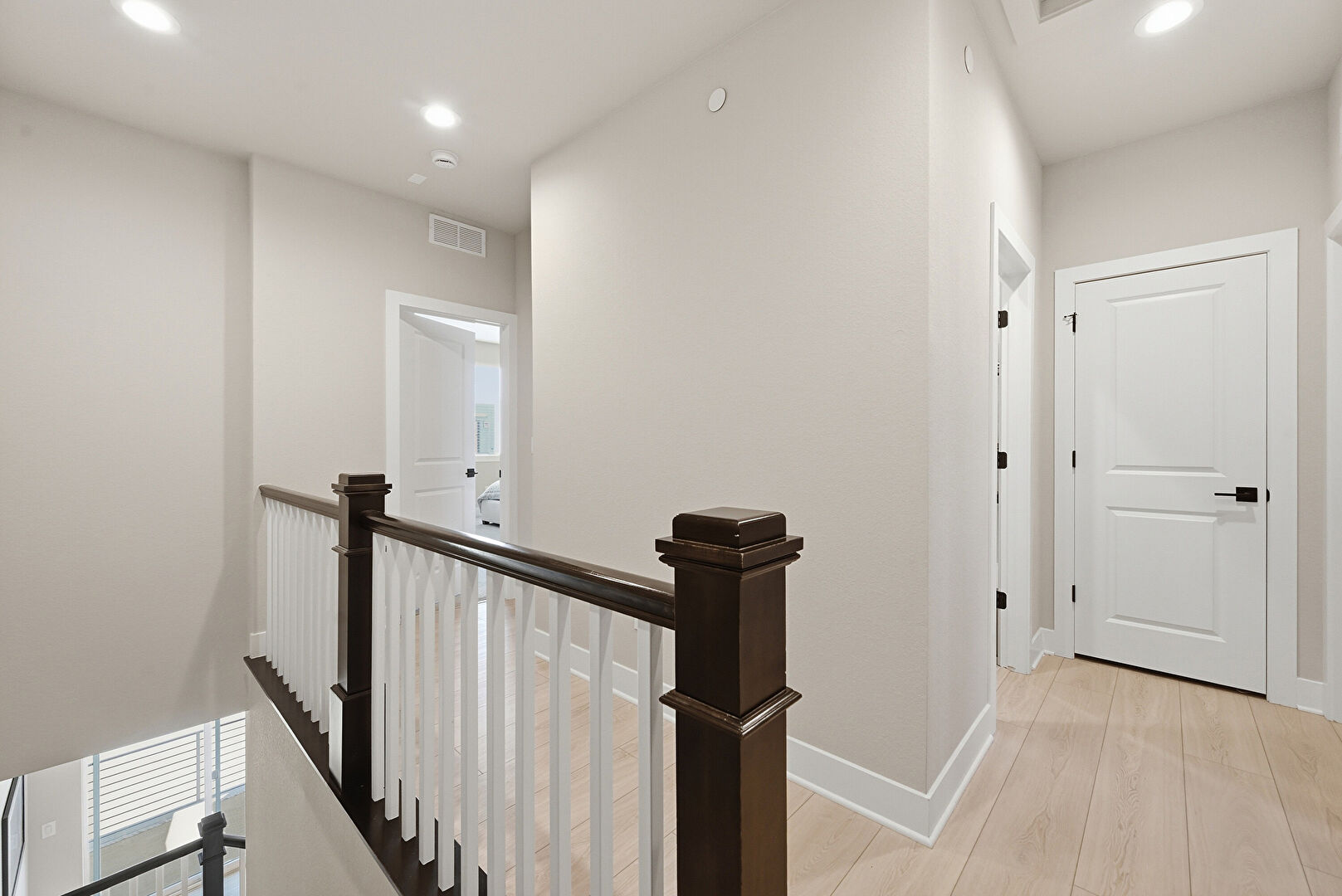 Baseboards Wall, Drywall, Natural Light, Recessed Lighting, Smoke Carbon Monoxide Detector, Upstairs Landing, Vent, Wood Finish Floor, Baseboards Wall, Recessed Lighting
