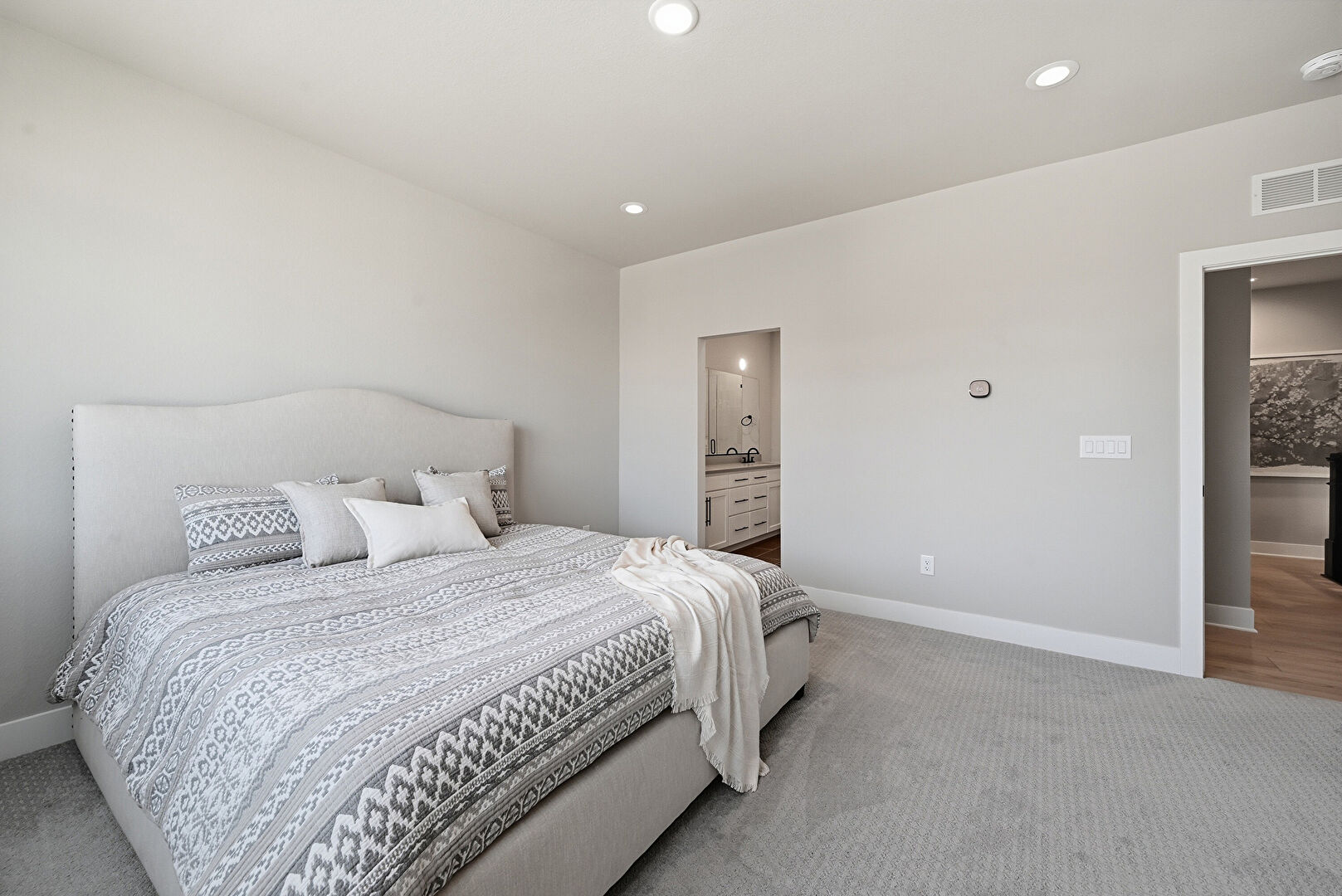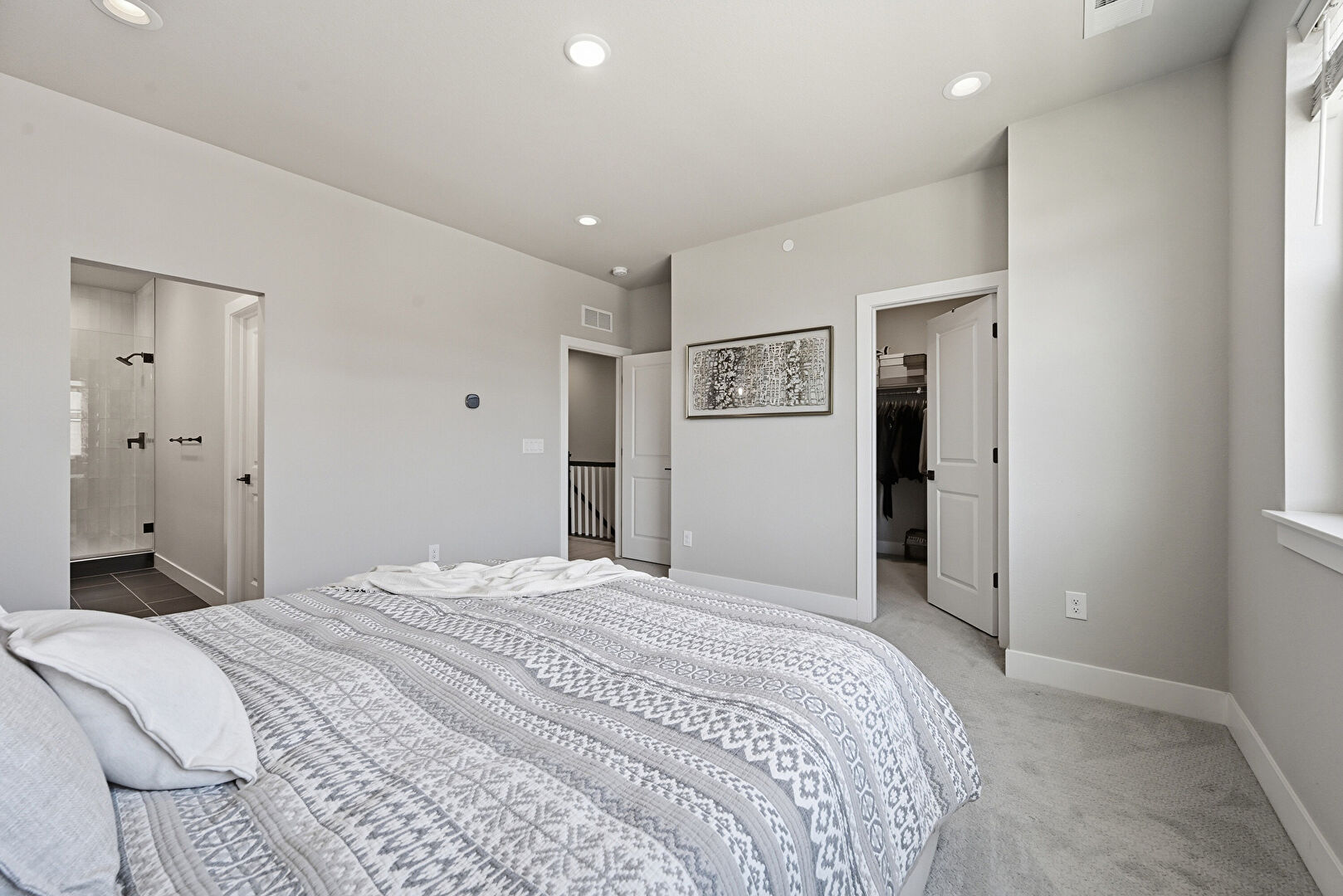 Baseboards Wall, Carpet, Closet, Drywall, Ensuite Bathroom, Natural Light, Recessed Lighting, Smoke Carbon Monoxide Detector, Vent, Walk In Closet, Baseboards Wall, Carpet, Drywall, Recessed Lighting, Vent