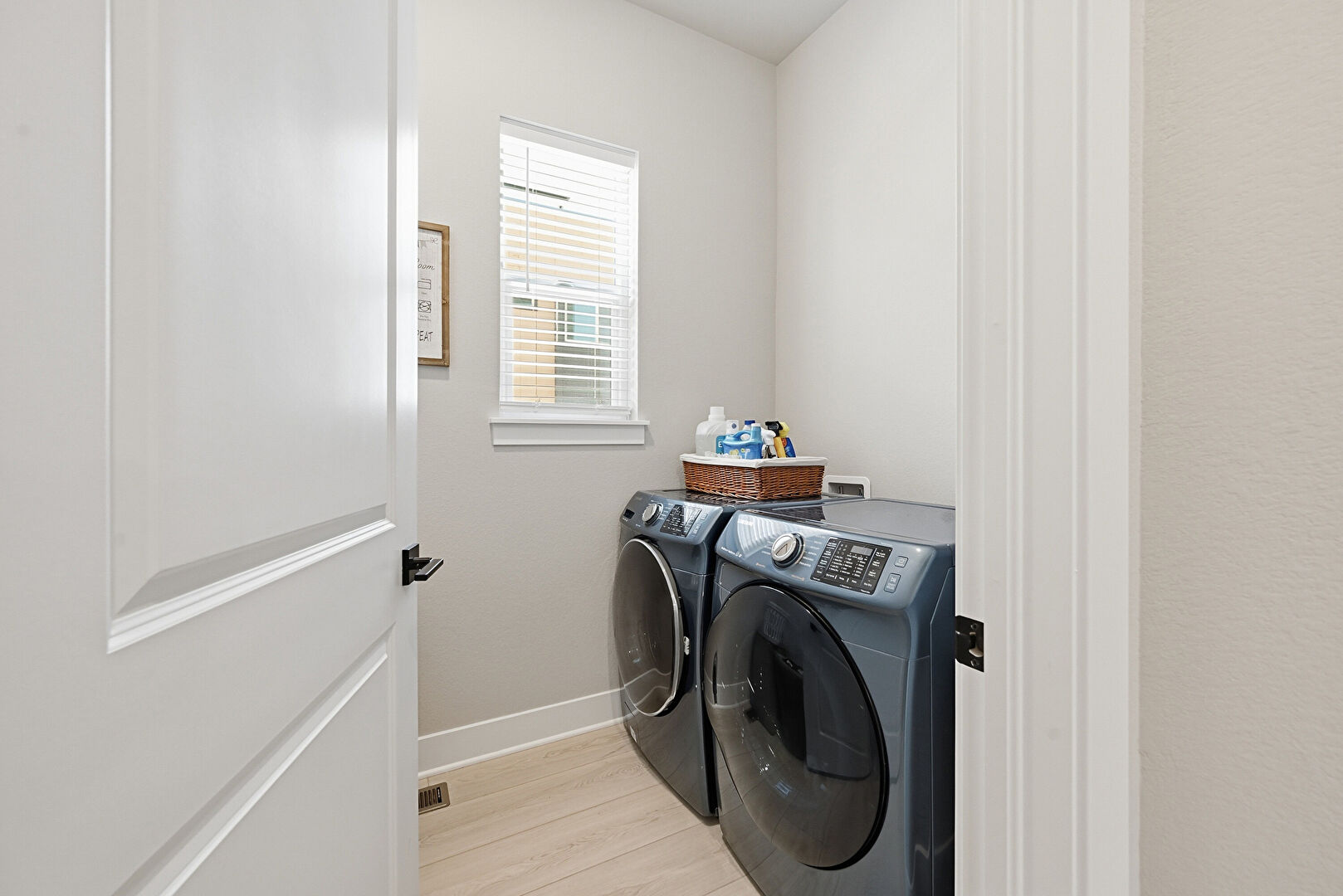 Baseboards Wall, Drywall, Natural Light, Vent, Washer Hookup, Wood Finish Floor, Laundry